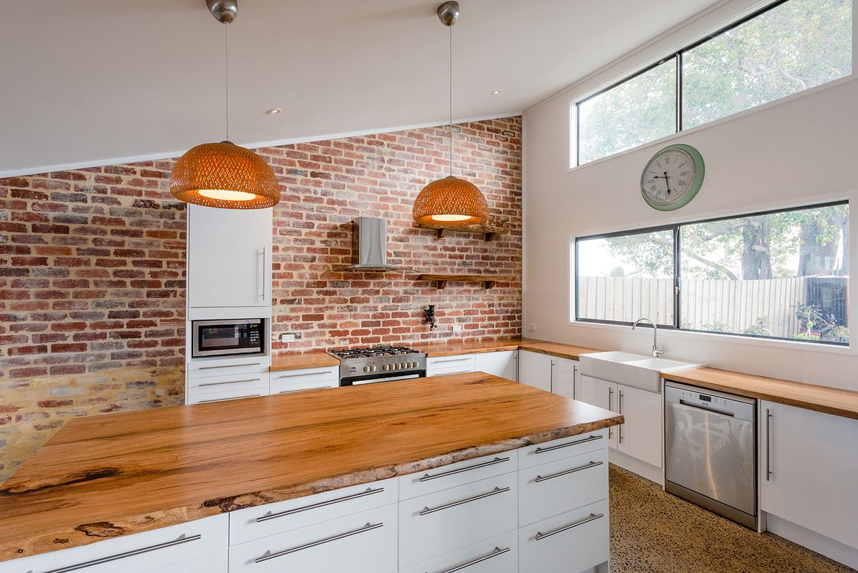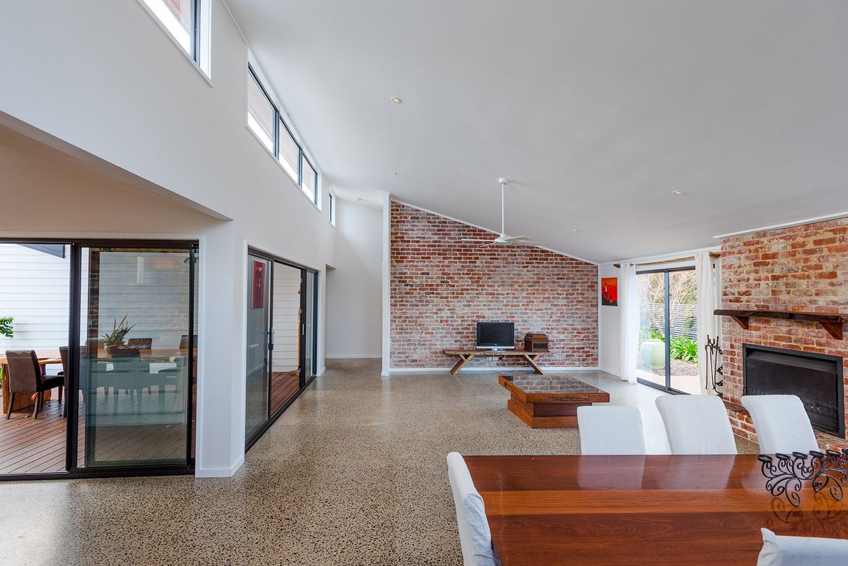 Using a wonderful melding of recycled brick, locally sourced timbers and polished concrete; along with eco-friendly design and passive-solar features including double glazed windows, north-facing highlight windows throughout, extra-high rated insulation batts, ceiling fans