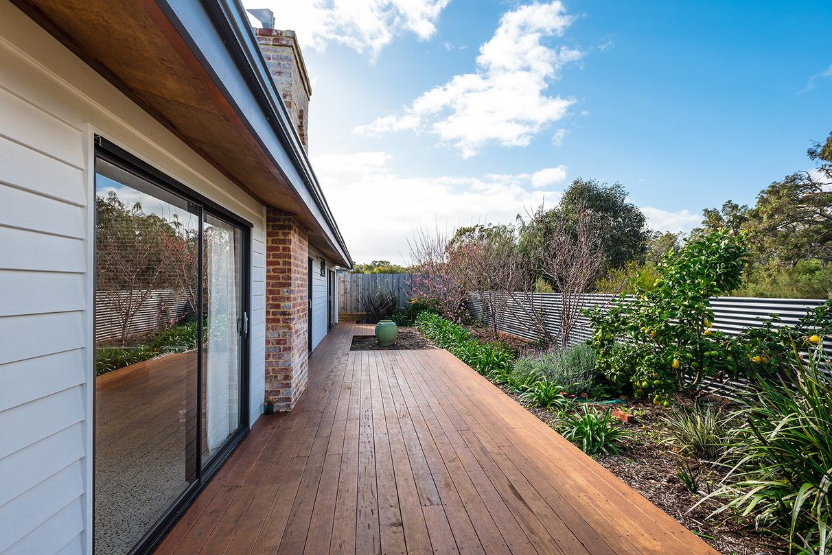 The outdoors are equally as delightful. Atop an 813sqm, beautifully utilised block, presenting a colourful landscape of thriving natives including a huge display of beautifully flowering kangaroo paw - and, pairing with the homes’ eco-minded, self-sufficient theme, a gorgeous recycled timber chook pen and an array of fruit trees to add to the plate! Trifecta nectarine / peach (‘peacherine’), peaches, lemon, kalamata olive and 3 pear trees.