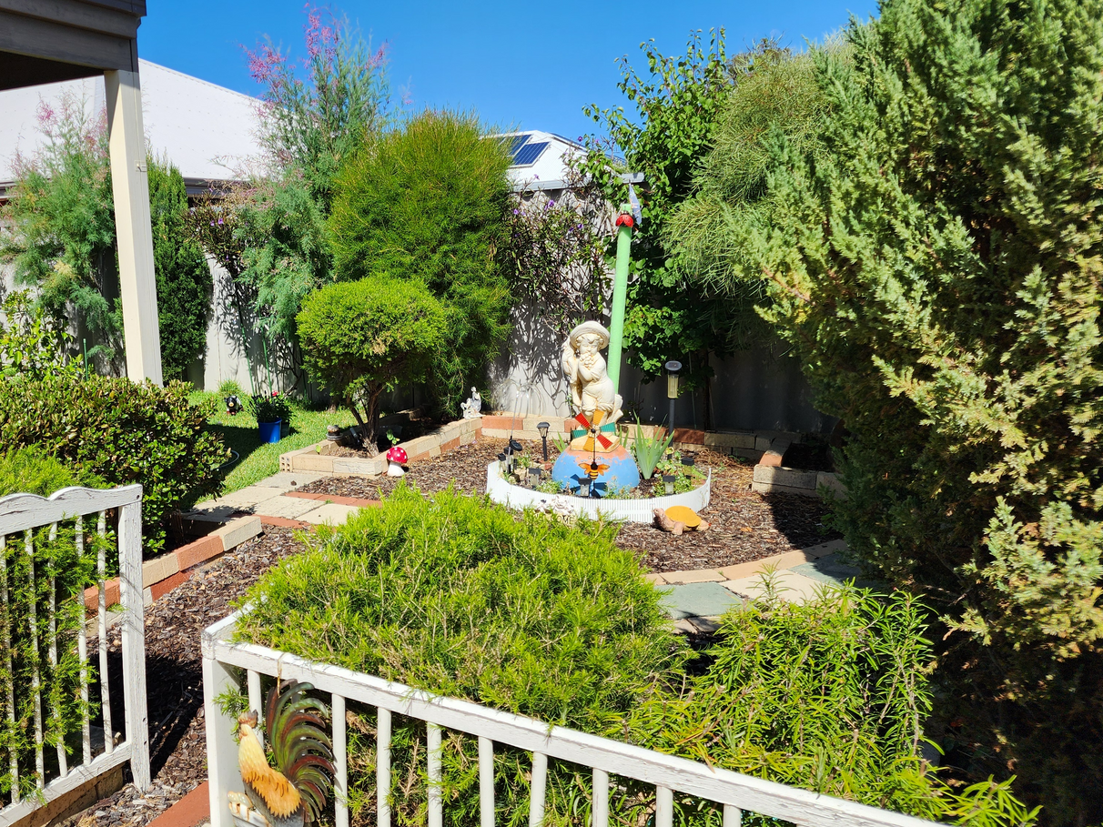Outdoor: A private backyard with a covered alfresco area, perfect for year-round entertaining or relaxing in the fresh air.
