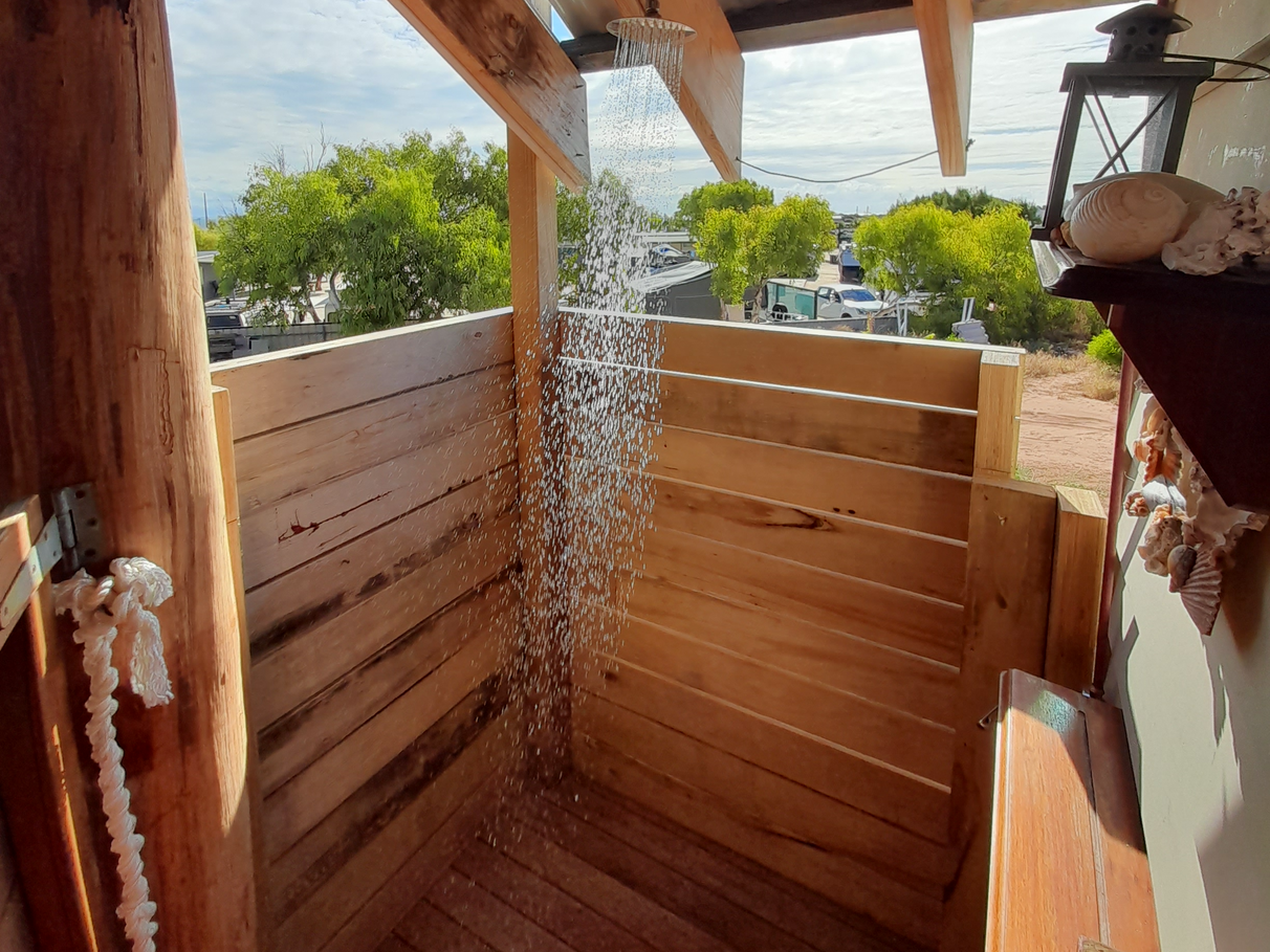 This property located in the World Heritage Listed Area of Shark Bay, in the heart of Town, Denham, showcases a beautiful Timber Framed Home, structured on Jarrah Poles, Featured Marri Timber Flooring overlooking the Bay from the Merbah Deck at the rear of the home.