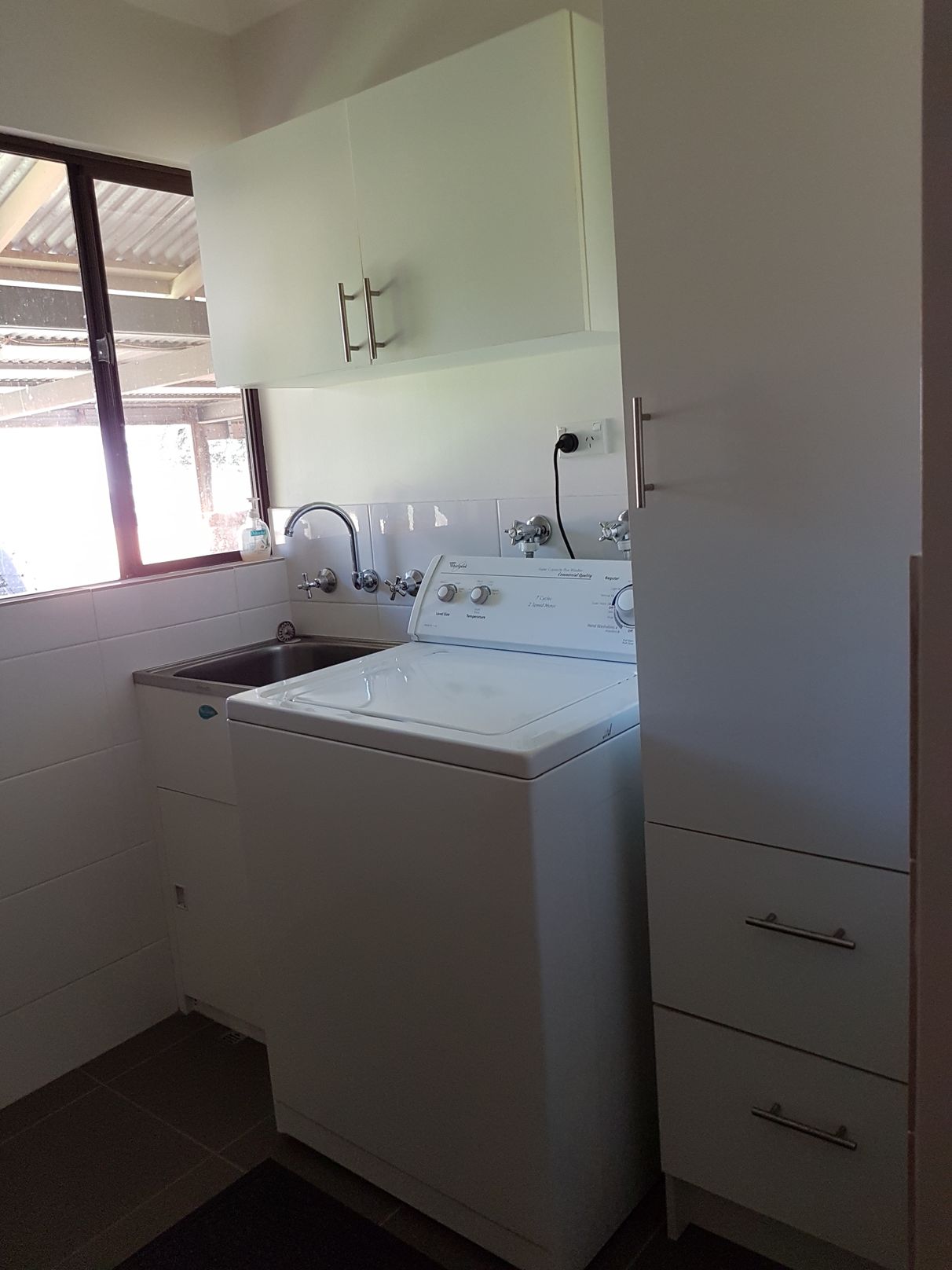 Bathroom and laundry have been nicely renovated and modernized for functionality, including a large walk in shower and modern taps and fittings. Tiles in the bathroom reach two meters in height for easy cleaning and that modern look.