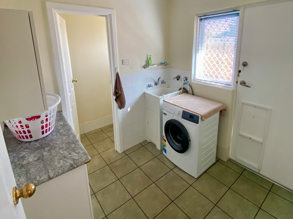 The bathroom has a spacious shower cubicle toilet and vanity and there is a second toilet off the large laundry room. The laundry is very spacious and features plentiful storage space.