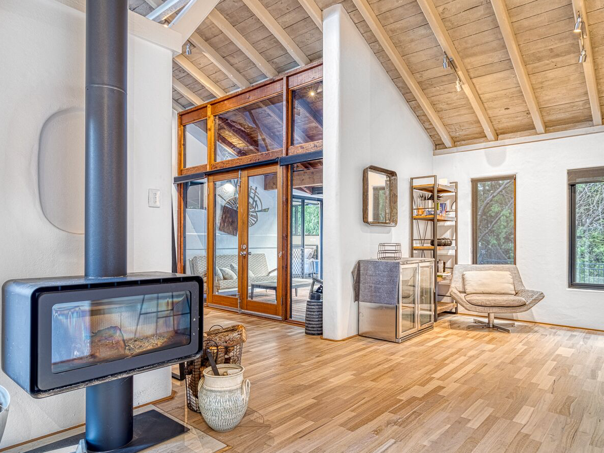 The expansive home and studio design is sprinkled with the magic rays of morning light, framed by custom placed glass spaces, studio burnished floors, washed high vaulted timbers, white coastal rafters and natural main living space taking in the tranquil reserve views. All-season comfort is provided across the residence and studio, warmed by the central fireplace in winter and cooled across summer with R/C A/C. Classic Australian outdoor entertaining is a way of life here, enjoy cooking up your daily ocean catch on the beautiful decked landing with the creek line trickling in the background under the reserve canopy, or sit peacefully in the heated spa under the galaxy of stars above and simply unwind, leaving the busyness of life behind you.