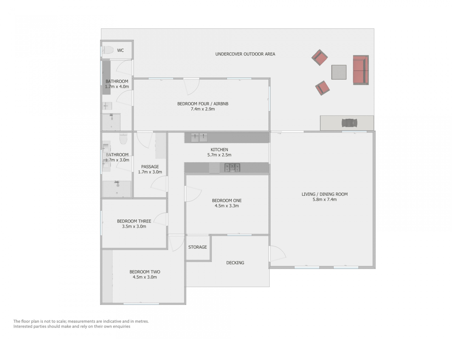 And if that is not enough there is an additional area attached to the house that is fully self contained with separate entrance, open plan bed and dining, kitchenette and additional bathroom which is being used for short term accommodation netting over $1200 per month additional income for very minimal effort. Rating at over 4.9 stars from 40 reviews, all the hard work has been done. Included in the sale price is all the furniture and furnishings in this area and the Airbnb account so you can continue earning straight away with bookings throughout 2023 and into 2024.