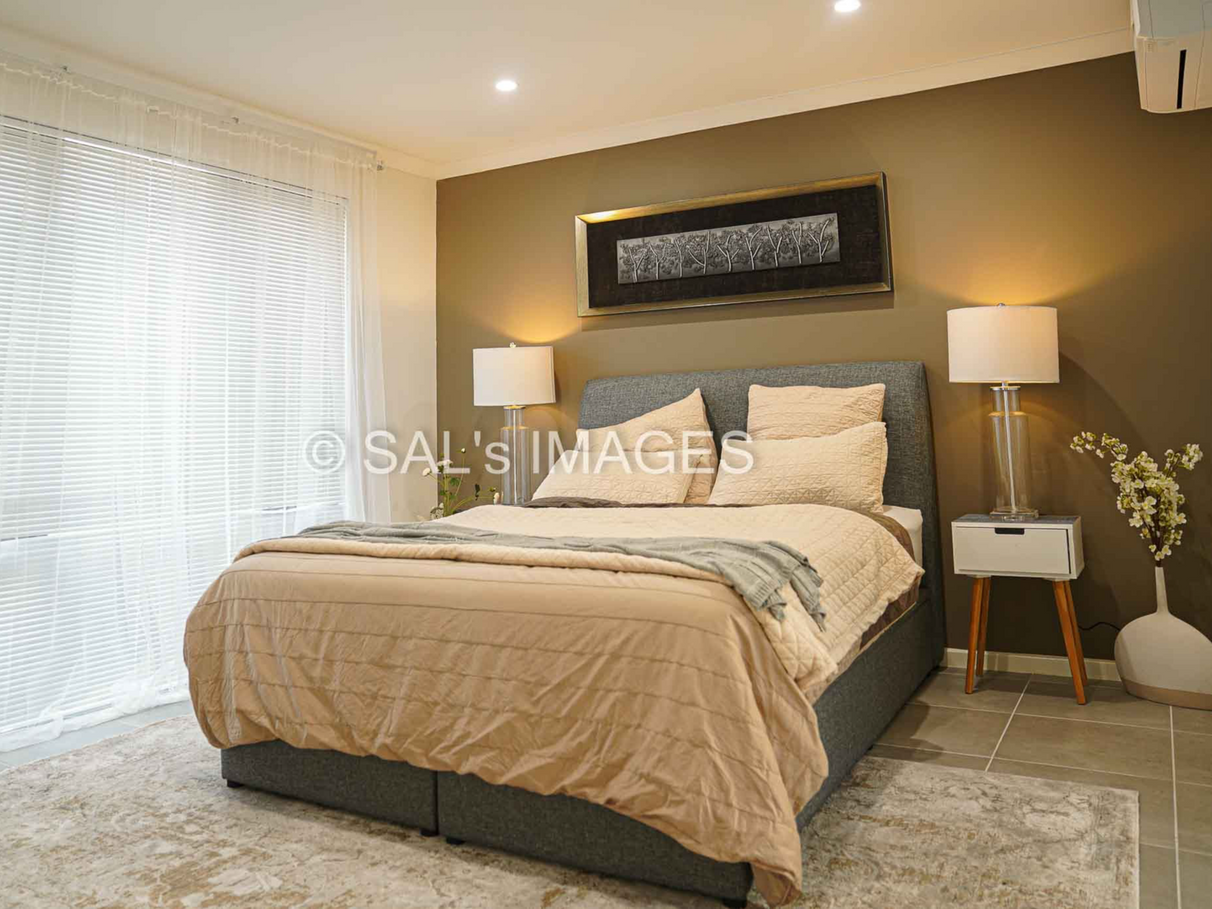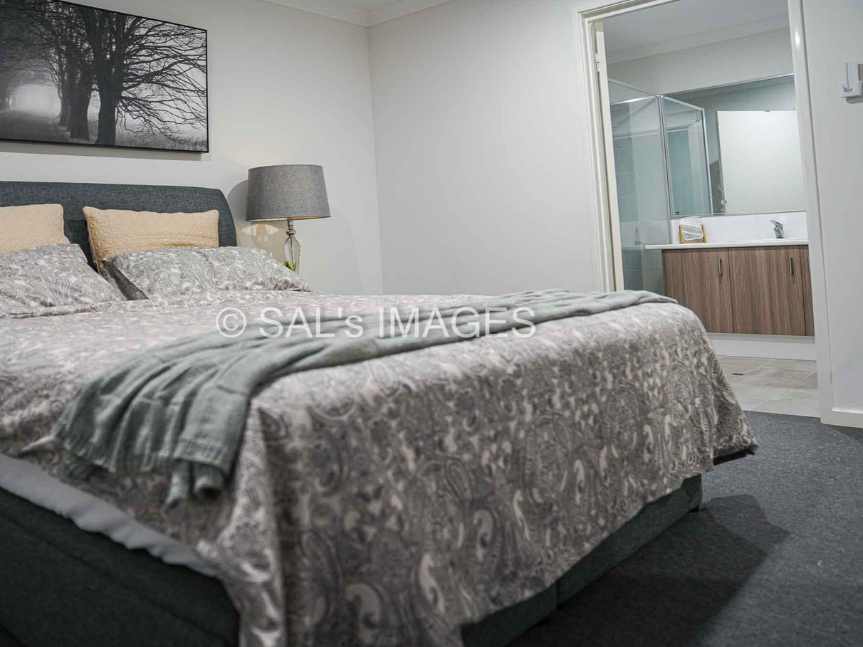 - Master bedroom with split reverse cycle air conditioning, floor to ceiling triple sliding door built in robes, large size ensuite with single vanity, shower, and toilet.