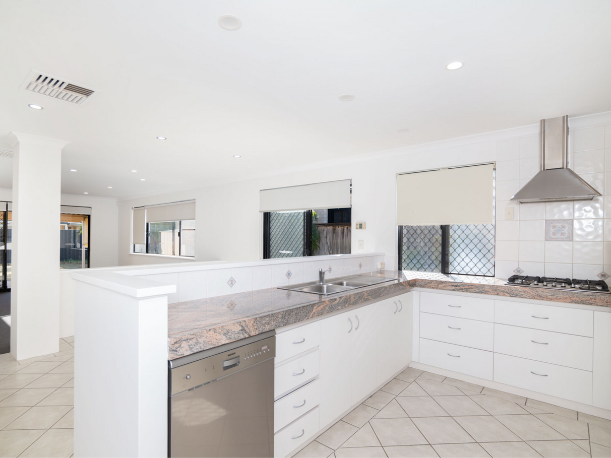 Discover the epitome of ideal living at 7 Sorrento Turn, Ellenbrook WA 6069. This home features a large master bedroom with a spacious walk-in wardrobe and split system air-conditioning, accompanied by an ensuite bathroom. Two additional bedrooms offer built-in robes, while the front living area leads to a modern kitchen with ample storage, Blanco dishwasher, Westinghouse oven, and gas stove. A second living area and dining room provide versatile spaces for relaxation and gatherings.