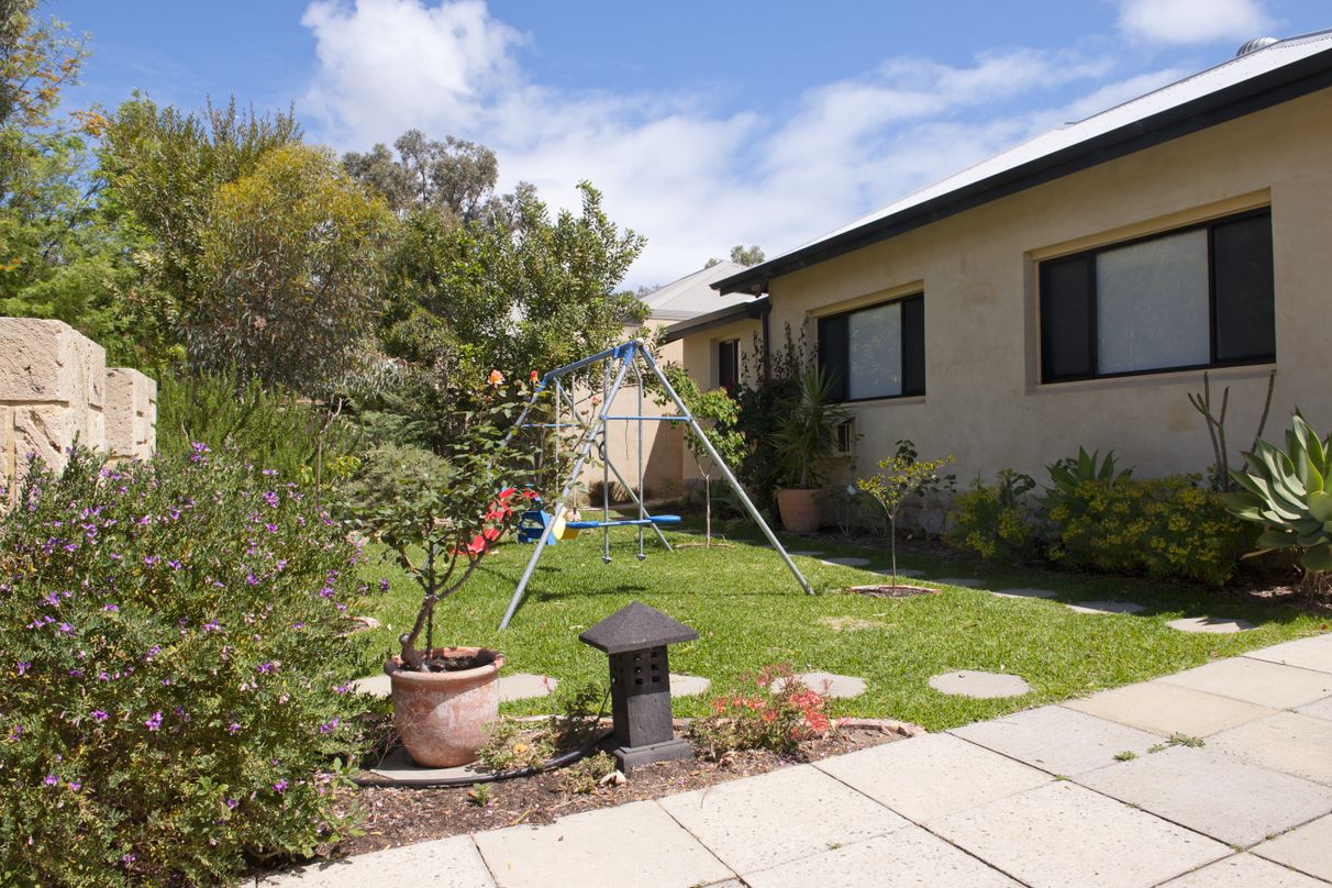 Terraced garden beds and lawns including a large lemon tree perpetually in fruit, avocado, macadamia, grapefruit and mandarin trees. Auto reticulation. Heaps of room for kids and pets to run around and a limestone/picket front wall to keep them contained.
