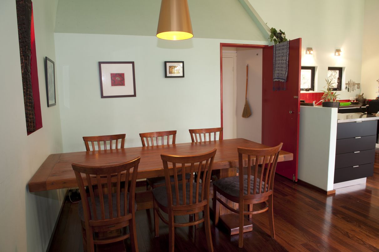 The kitchen and dining area provide plenty of space for socialising, with a view and access to outdoor living and the garden that will keep the chef happy.
