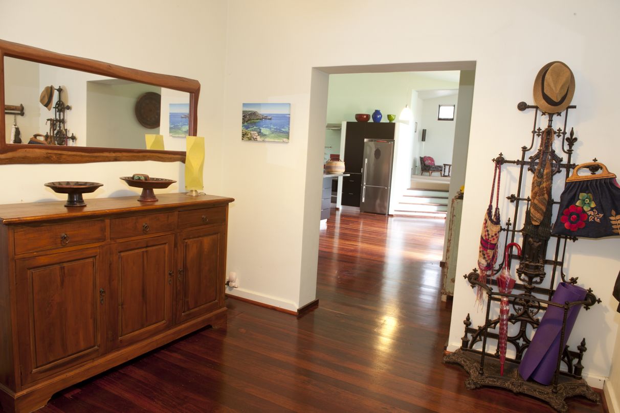 The modern extension incorporates solar passive design principles and beautifully crafted stonework, soaring ceilings and floor to ceiling windows with a northern aspect.