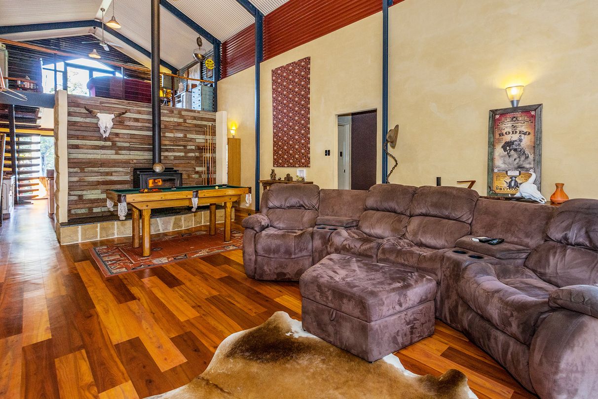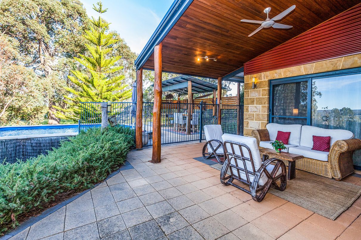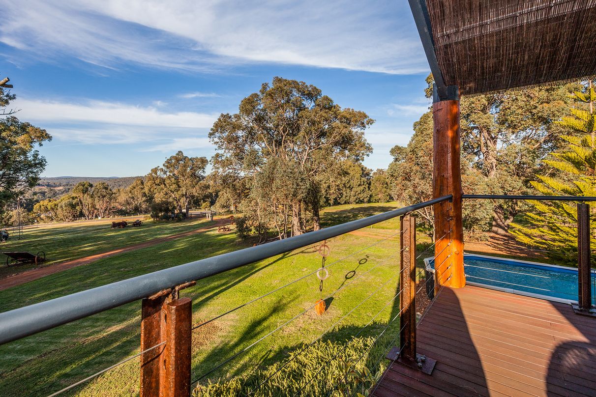 Jam-packed with mod cons and extras to ensure a comfortable relaxing lifestyle for the whole family, the expansive open plan living flows effortlessly together yet with separation in between. The beautifully appointed kitchen showcases Solid Jarrah features and flows out to the central living area equipped with a large toasty woodfire heater. Enjoy the outdoors lounging by the sparkling swimming pool, bird watching on the breezy balcony or entertaining guests around the firepit. With plenty of space to utilise, there is also a chook pen, workshop and beautiful deciduous trees spread across the generous grounds.