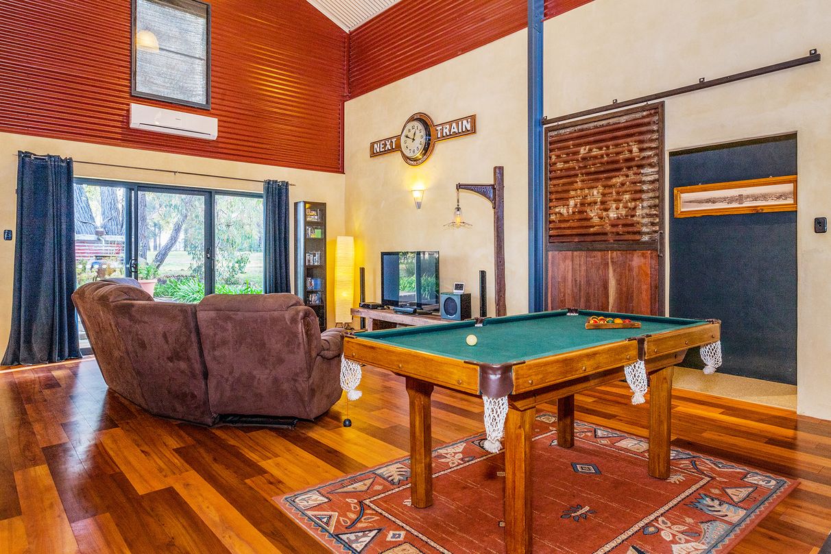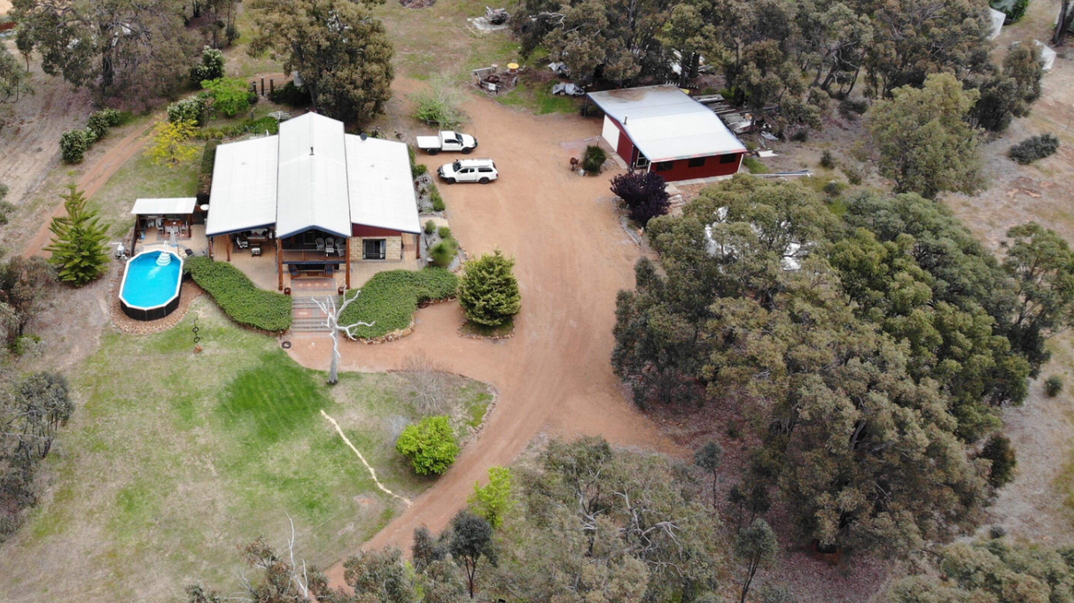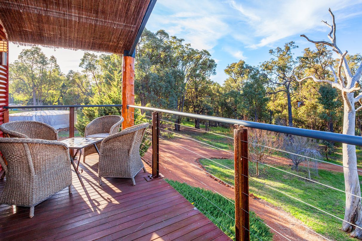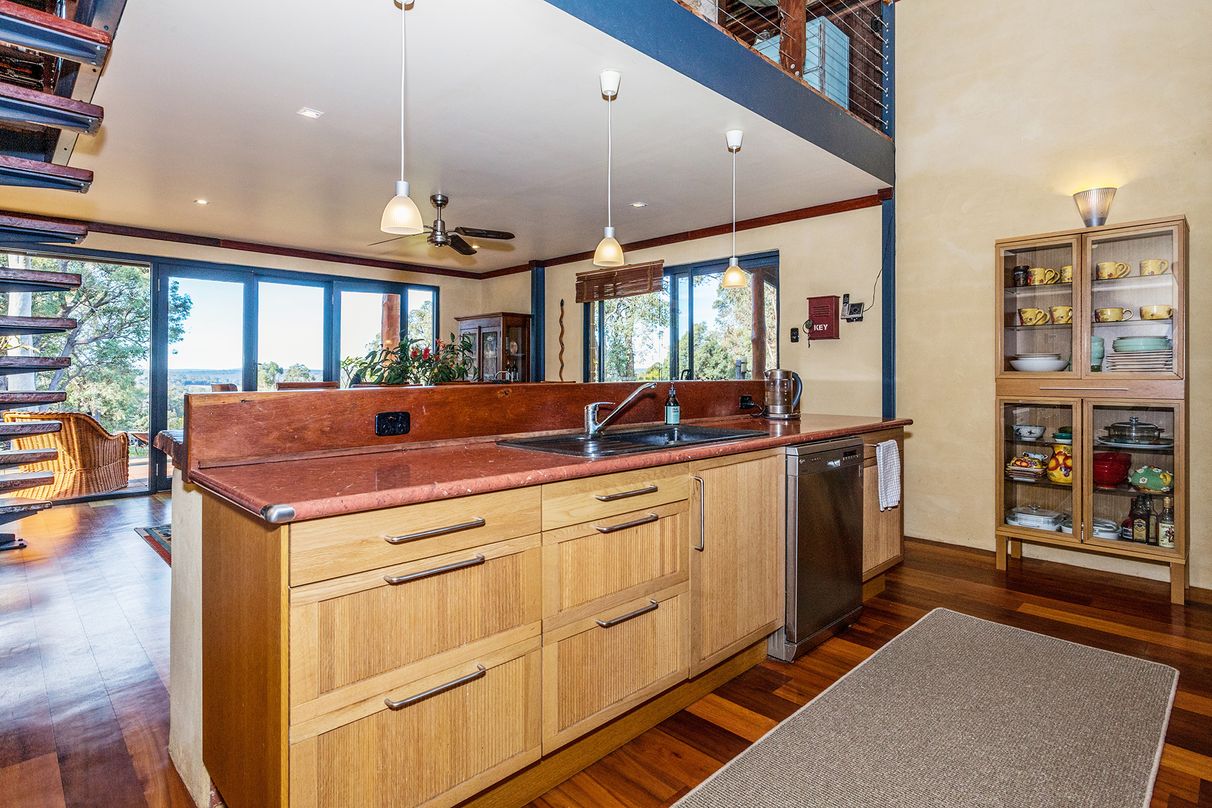 Jam-packed with mod cons and extras to ensure a comfortable relaxing lifestyle for the whole family, the expansive open plan living flows effortlessly together yet with separation in between. The beautifully appointed kitchen showcases Solid Jarrah features and flows out to the central living area equipped with a large toasty woodfire heater. Enjoy the outdoors lounging by the sparkling swimming pool, bird watching on the breezy balcony or entertaining guests around the firepit. With plenty of space to utilise, there is also a chook pen, workshop and beautiful deciduous trees spread across the generous grounds.