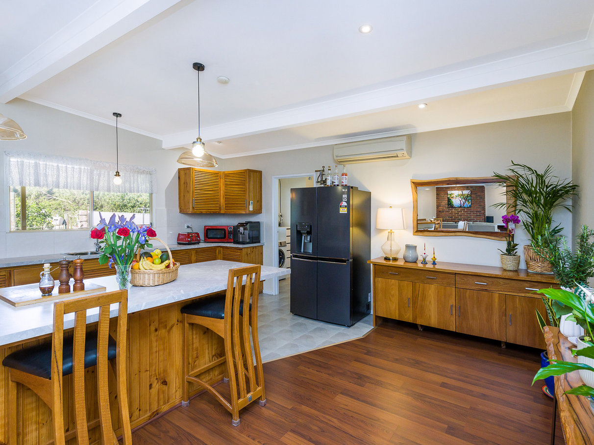 Country Delight Located in the Beautiful Town of Gingin, Only 40 minutes from Ellenbrook or Joondalup, Beautifully appointed house with Open Plan Living, Open Fire Place, Large Bedrooms, Walk in Wardrobes, Large Bathroom including a Bath, Large Generous Kitchen with a Big Oven/Stove, Plenty of Cupboards and a Massive Pantry Cupboard for storing all your essentials and every thing else that you would expect from a Country Life Style, including all the fruit trees and vegetable gardens, including your very own Mango trees, Orange and Mandarin trees, Mulberry and Pomegranate trees, Lime and Kaffir Lime trees, Passionfruit and Dragon Fruit Vines, Beautiful Rose Gardens and Lovely Lawns all reticulated, Not to mention your own Chicken Coop for daily Fresh Eggs, all with in an easy walking distance from the local Shopping Centre, Cafe, Hotel, Magnificent Multiple Sports Grounds and the Town Swimming Pool is just a short stroll away, the all important Medical, School and Community Resource Centers also all in walking distance, Located on a quite block with vacant rural properties on two of the boundaries. Large Front Alfresco Area and Wide Rear Verandah suitable for all your entertaining or private time. TV and Telecommunication ports in all rooms.