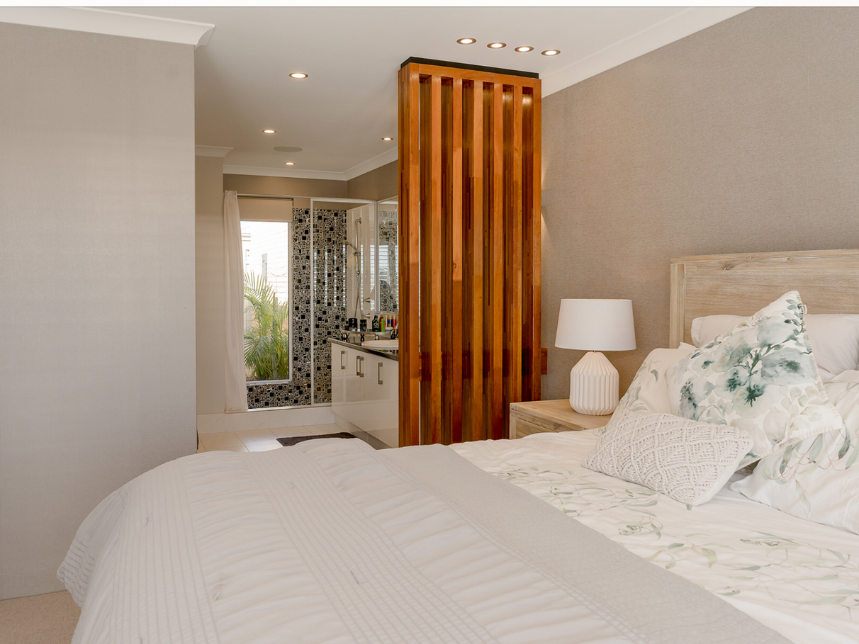 Impressive Master bedroom with wrap around block out curtains, ensuite and walk-in robe