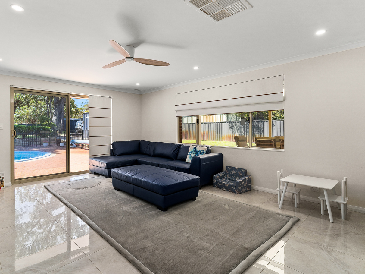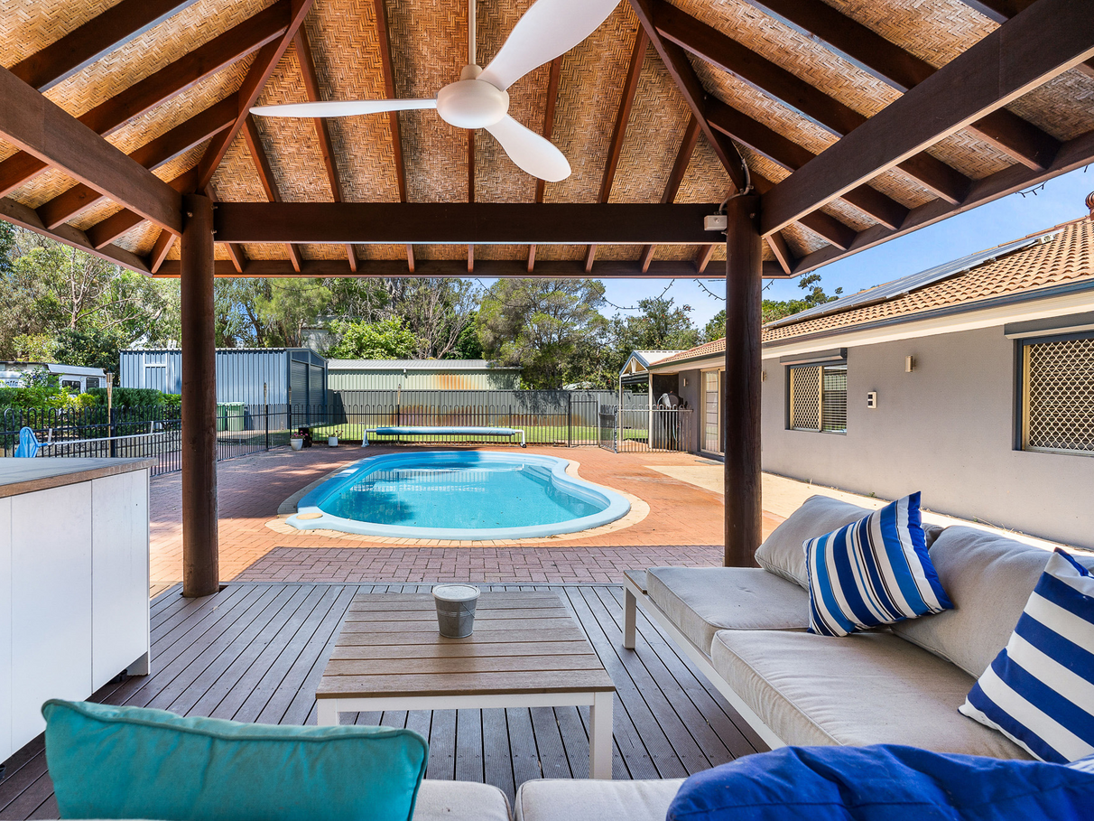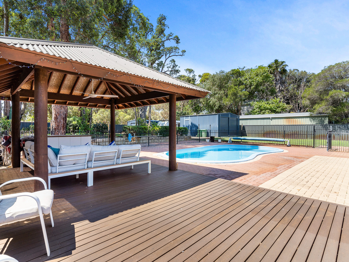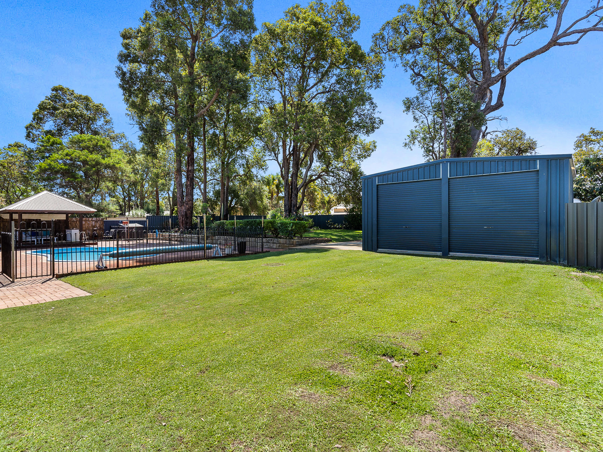 As you enter the kitchen and living space you have high ceilings and plenty of kitchen storage and bench space. Look out through the games room and you'll see the fabulous pool and entertaining area that is overlooked by magnificent tuart trees. Outside there is two sheds as well as ample parking and storage space for all of the toys.