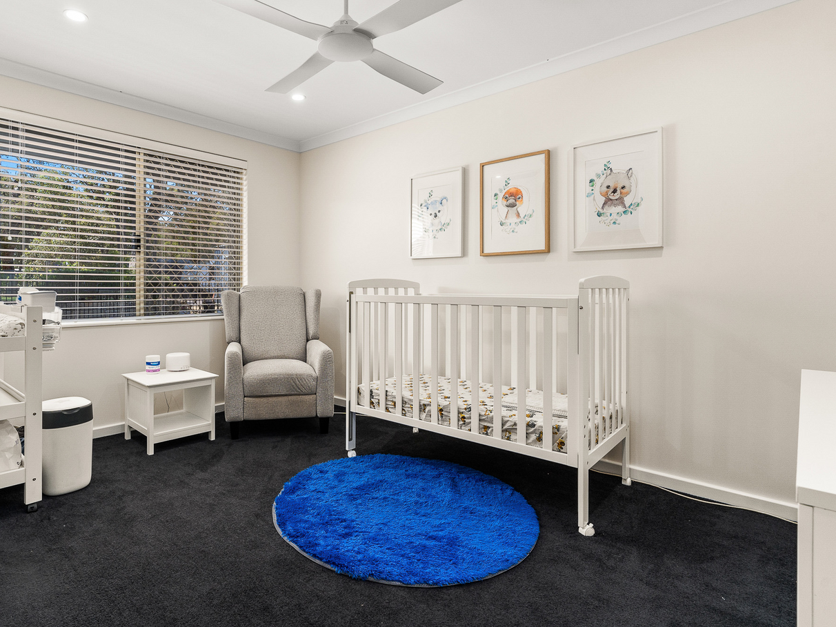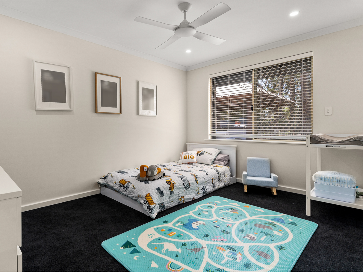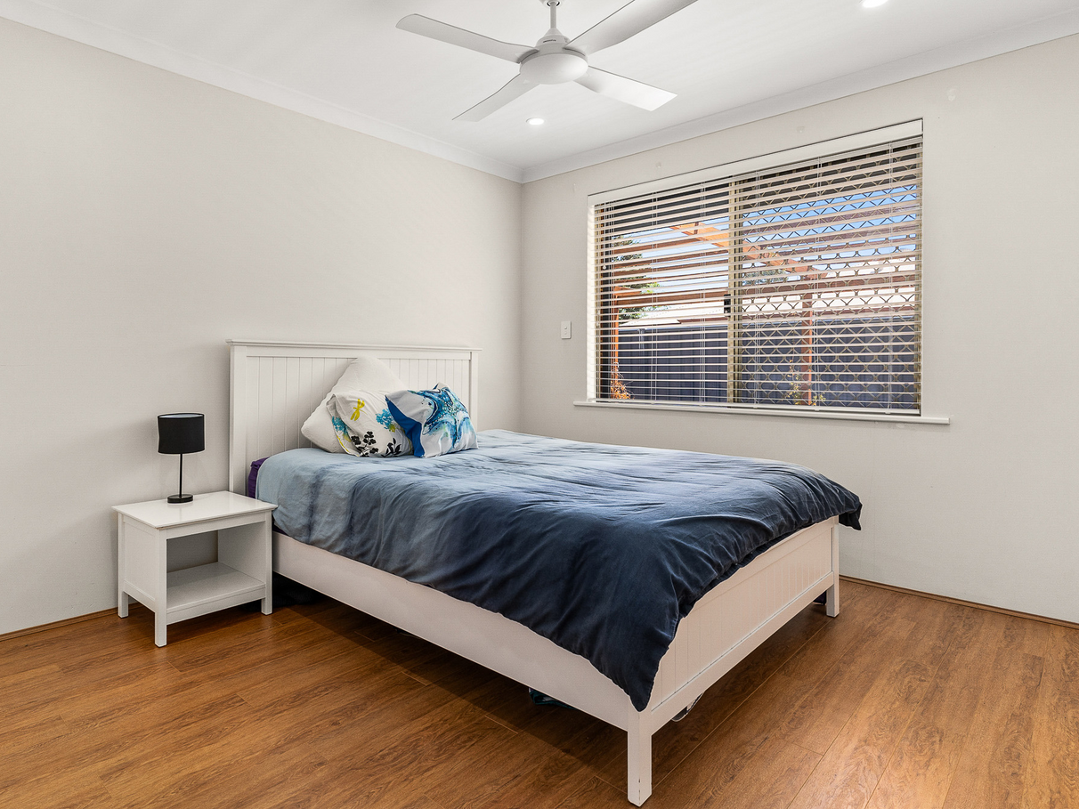 At the back end of the house there are 3 great sized bedrooms, all with ceiling fans and down lights with the furthest two having fresh carpet and walk in robes. All bedrooms have electric roller shutters that are linked up to a smart home system that allows you to set open and closing times.
