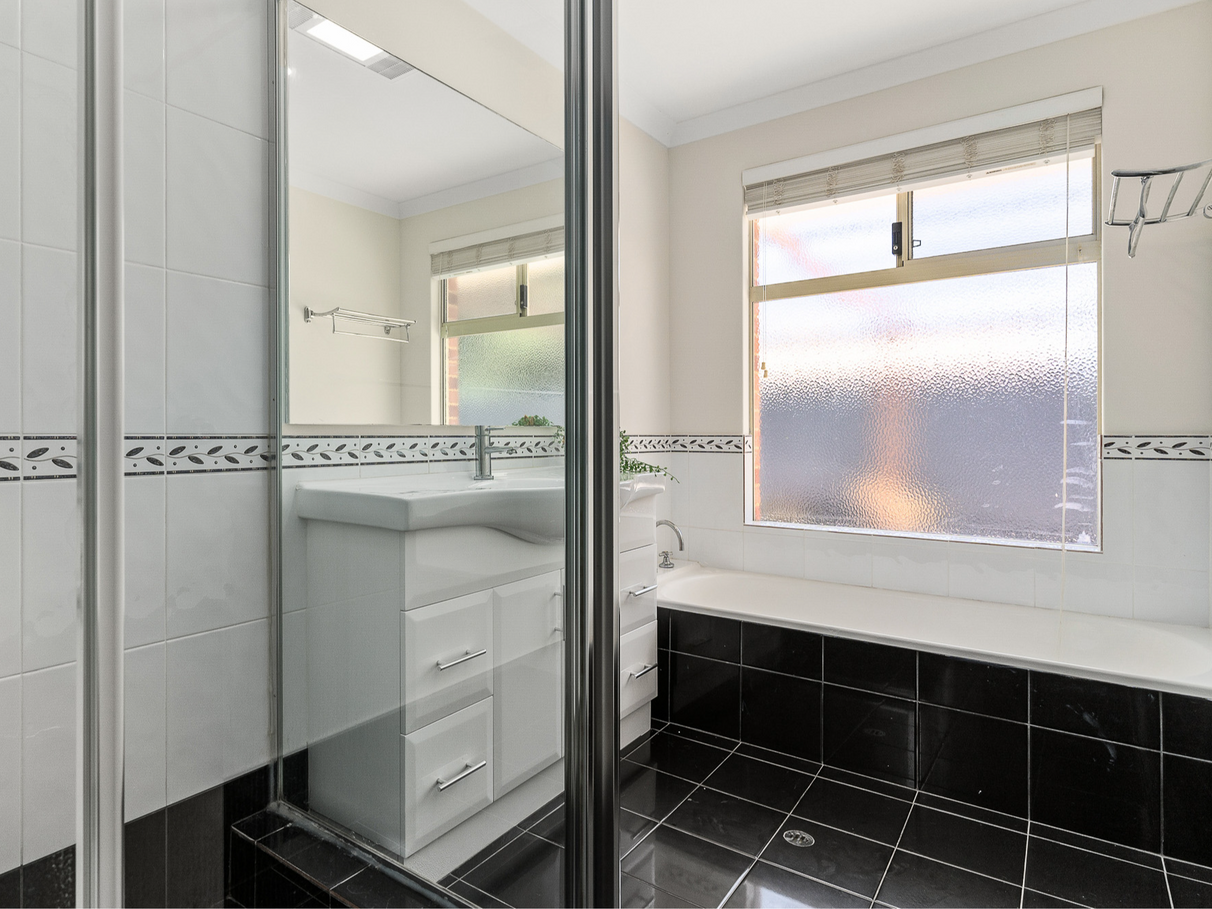 The spacious master bedroom has new carpet, a new split system and is freshly painted with a walk in robe and modern ensuite.