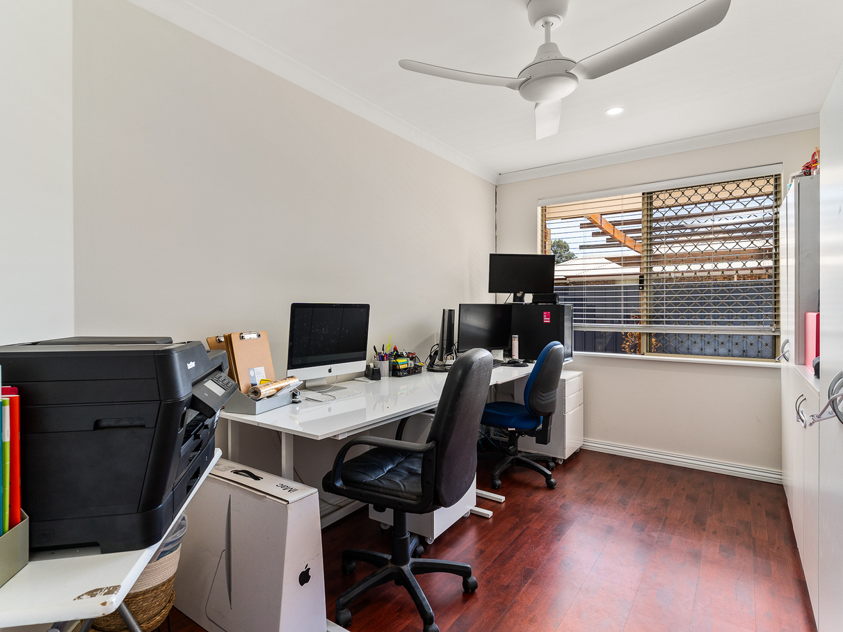 Continue to have an adults retreat in the front section of the house with a study, dining & front lounge area. The lounge rooms lux plantation shutters beam the natural lighting onto the large easy to clean tiles that are throughout the home.