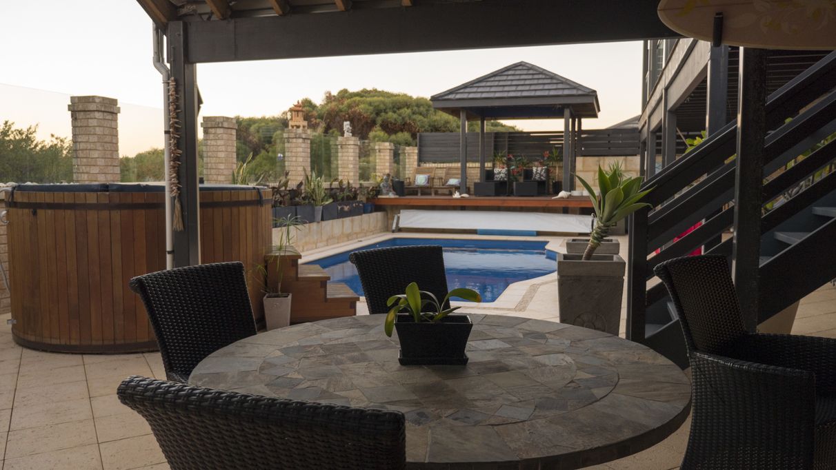 OUTDOOR ENTERTAINING Enjoying a westerly aspect, plenty of afternoon sunshine and WA’s magnificent sunsets - the extensive work applied to this area has incorporated plenty of undercover space and protection from the elements - creating an exceptional interflow where the whole family and their guests can wile the hours away, well after the sun has set and the birds have gone to bed!