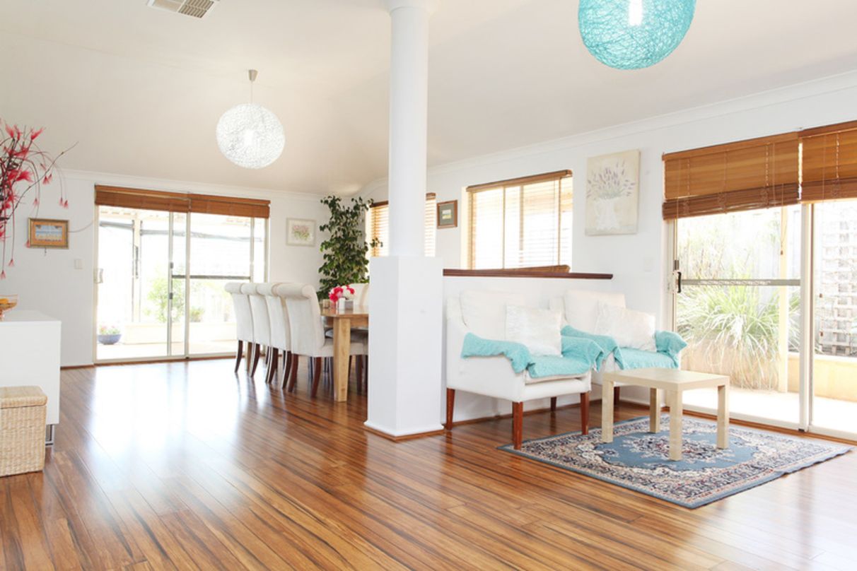 • Family and dining area in an open plan set up surrounding kitchen with stunning bamboo flooring