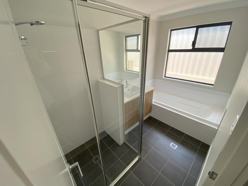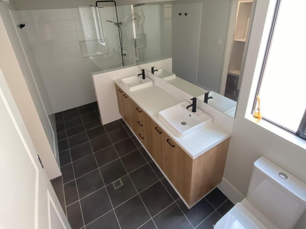 Upon entering the home, you will feel the sense of a modern and well thought out house design. The master bedroom, situated at the front of the house is a decent sized carpeted room with a double walk in robe that brings you through to the ensuite. In here you have the pleasure of a double vanity and shower with a functional wall mounted 2 in 1 shower rail.