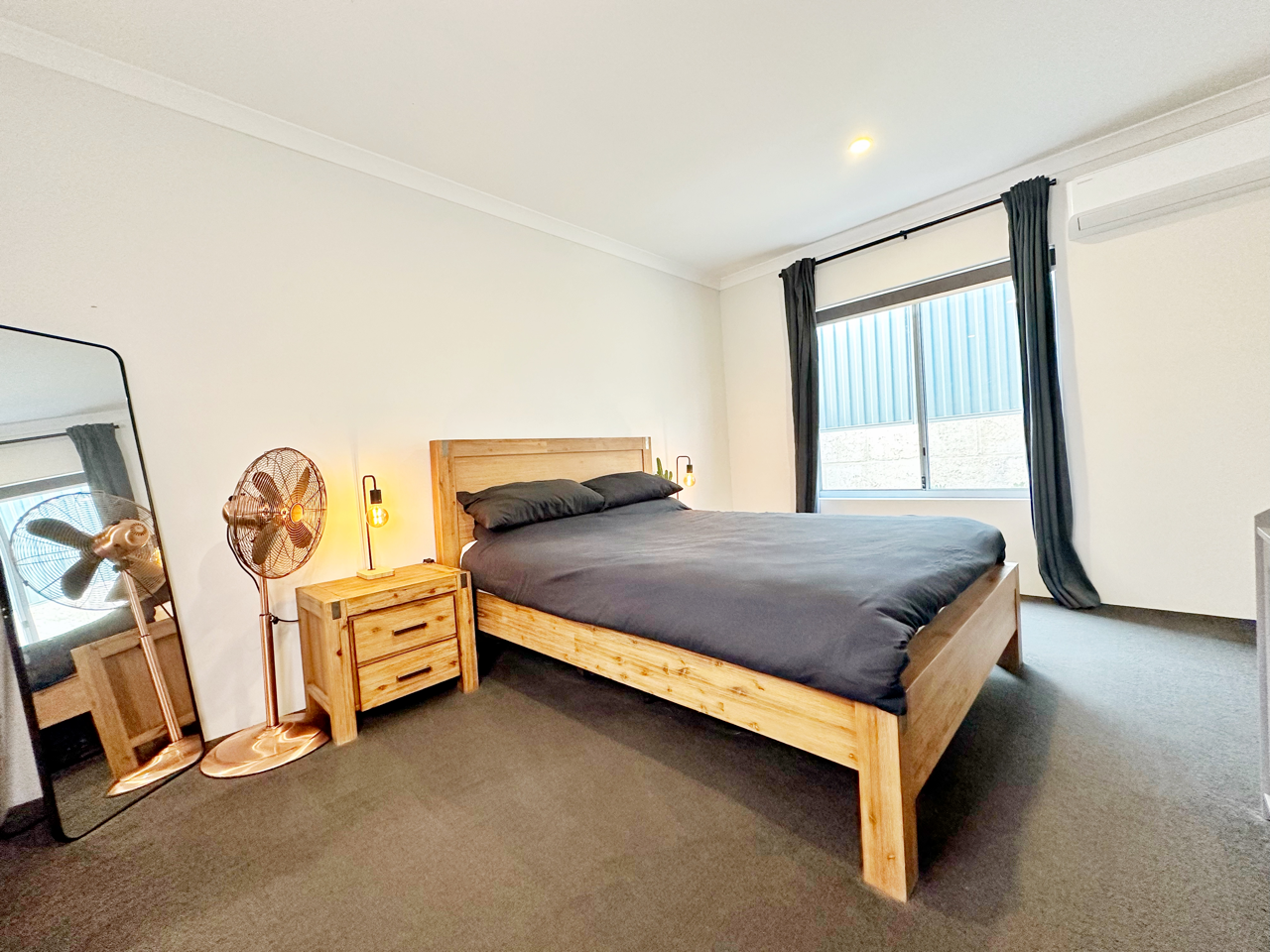 The large master bedroom tucked away at the back of the block provides you with privacy and comfort. With a fully equipped en suite, walk in wardrobe and dedicated split system air-conditioning, the main bedroom provides you with the perfect sanctuary.