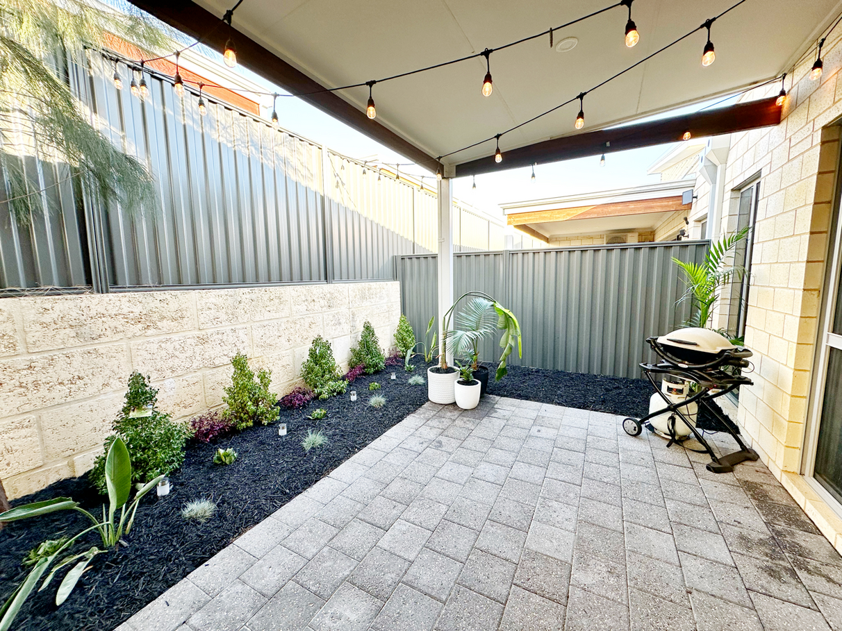 The secure and private garden/alfresco flows from the heart of the home, with a low maintenance garden, down lights and paved area, this outdoor living and entertaining area has it covered year-round.