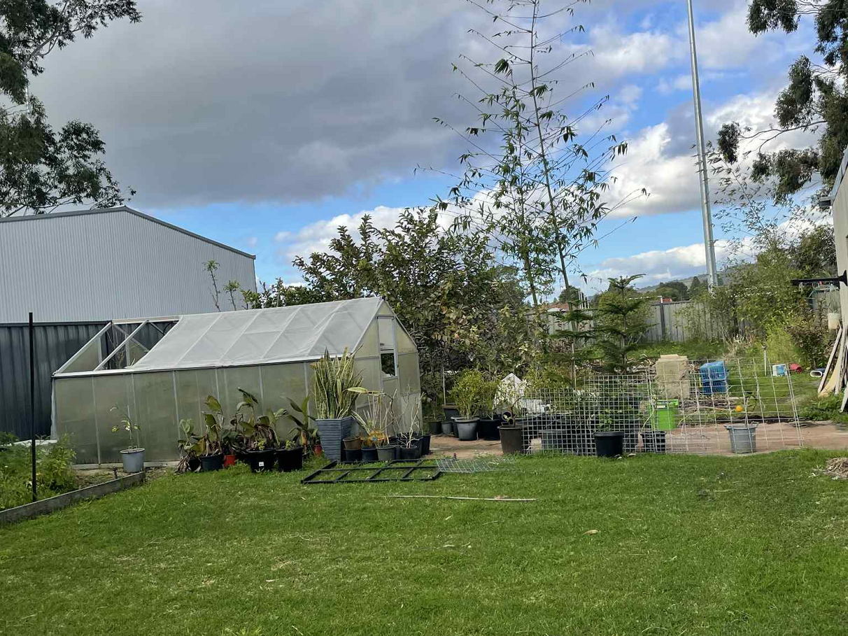 Established gardens and lawn , working greenhouse , reticulation , bore water .