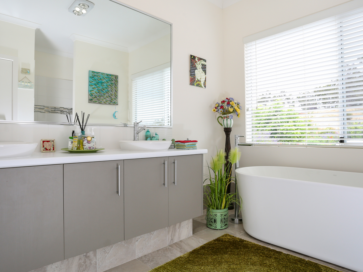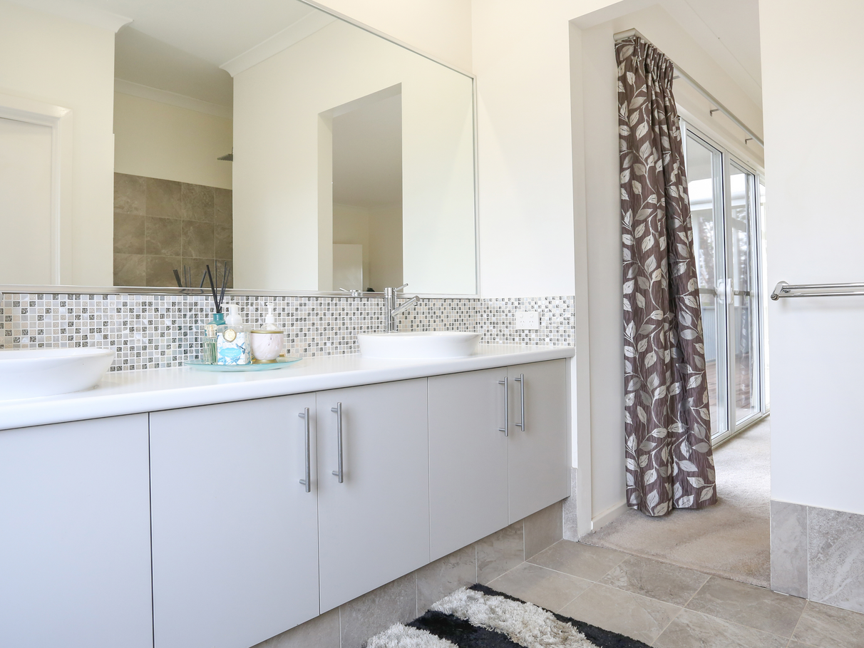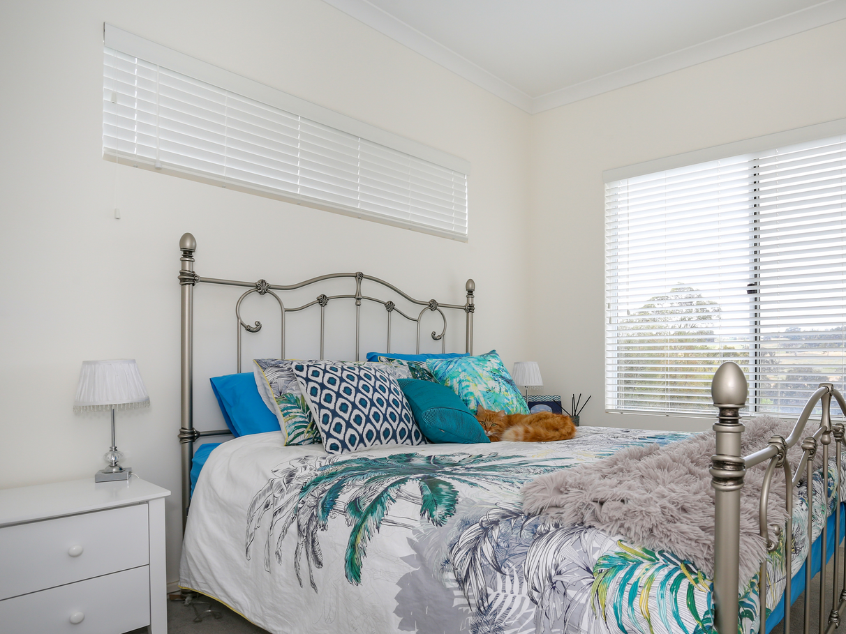 The accommodation wing consists of the master bedroom with built in robe plus en suite with walk in shower as well as a toilet with door for privacy. The en suite has separate wash basins and a feature a wall length mirror.