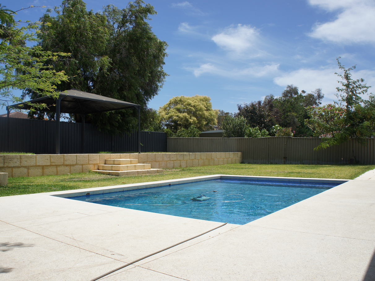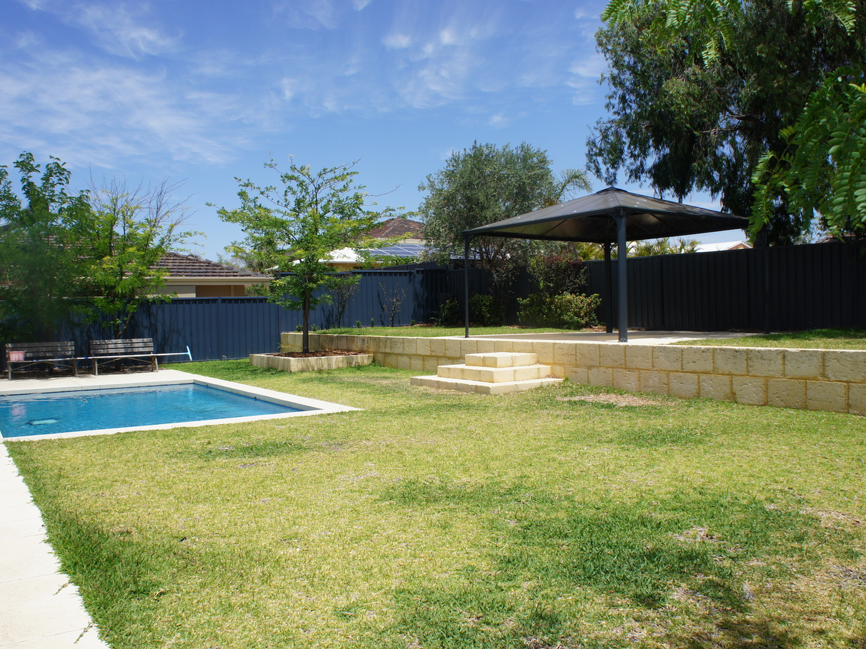 But that’s not all – you have an alarm for that extra piece of mind, a double carport, a storage shed under the main roof, a double linen cupboard plus two single storage cupboards, room for an extra car to the front verge, fully reticulated gardens, a fully fenced front courtyard to let the kids and furry kids run around and four to six weekly pool service included in the rent!