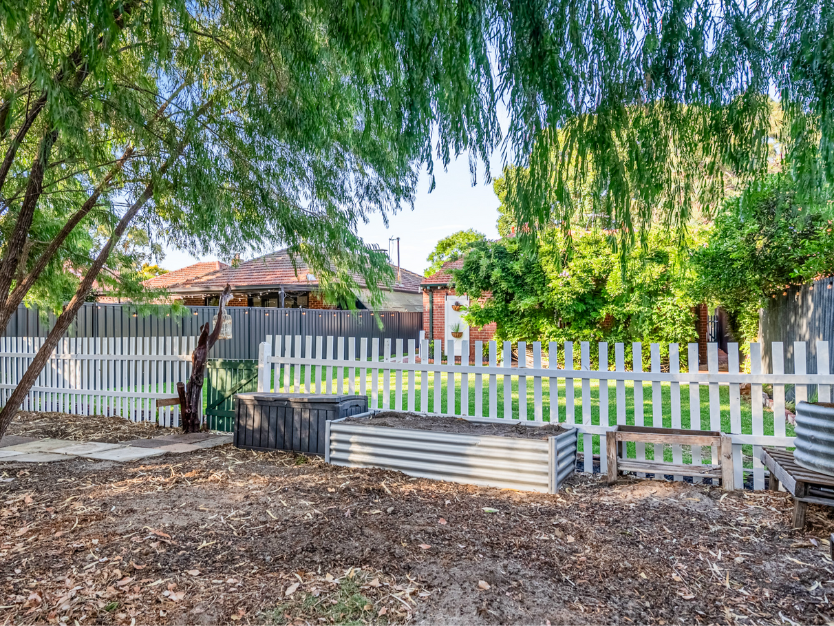 Set on a generous 544sqm block in one of Kensington’s most tightly held pockets, this beautifully presented 3 bedroom, 2 bathroom heritage home blends original character with thoughtful modern updates. High ceilings, ornate detailing and polished floorboards bring warmth and authenticity, while the established trees and expansive lawns create a level of privacy and calm that is genuinely rare this close to the CBD. With mature greenery throughout the property and streetscape, including one of Perth’s coveted jacaranda-lined streets, this is a true inner-city retreat.