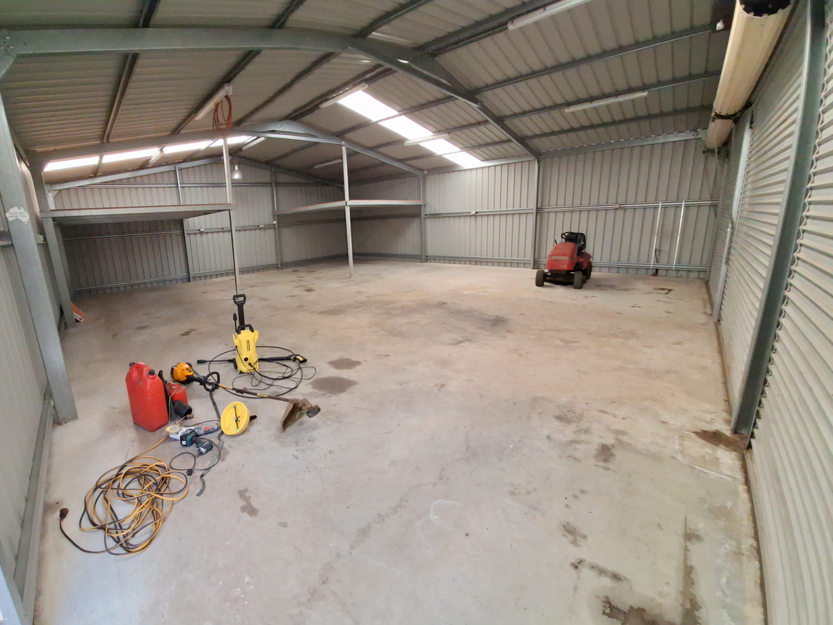 Delightful open plan home with 3 bedrooms and 1 bathroom. Includes an enclosed verandah for use as either a play room, storage or home office. 2 reverse cycle air-conditioning to lounge and main bedroom. Complete with motorised rollershutters, alarm system and CCTV. The side drive through access leads to a massive 10m x 11m shed, perfect for those with a sole trader business requiring secure shed space or for the car enthusiast/mechanic. Features 2 mezzanine floors, reinforced centre concrete ready for vehicle hoist installation and 3 phase power. Ample yard space allows storage for trailers. There is plenty of space for vegetable gardens amongst the fruit trees. A chicken pen provides the perfect space for your own backyard hens. Relax on those summer evenings in the front courtyard by the water feature and koi fish pond.