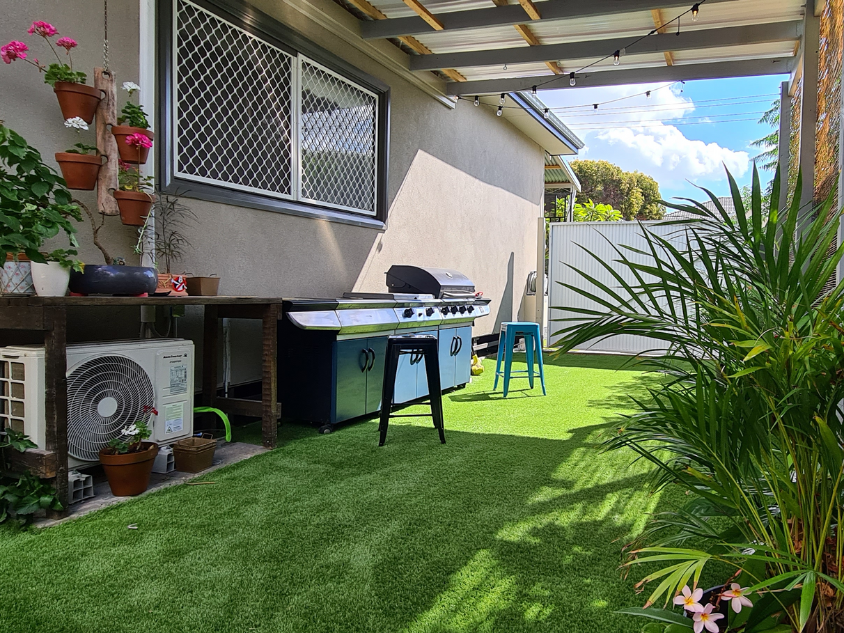 Outside you have your choice of watching the world pass by on the front veranda, sitting under your very own grape vine and picking fruit & vegetables from the garden or entertaining in the spacious courtyard.