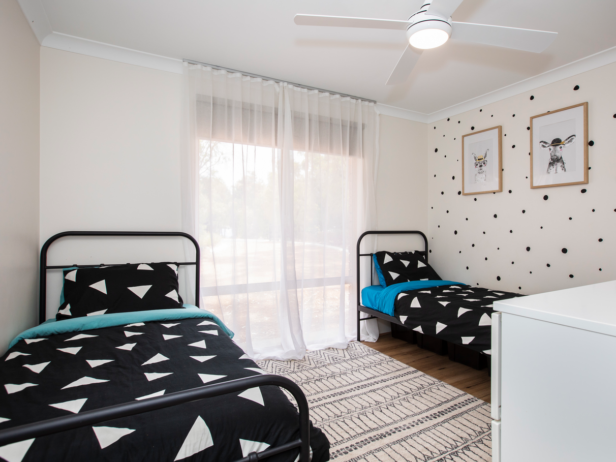 Ceiling fans in all bedrooms, lounge and dining room