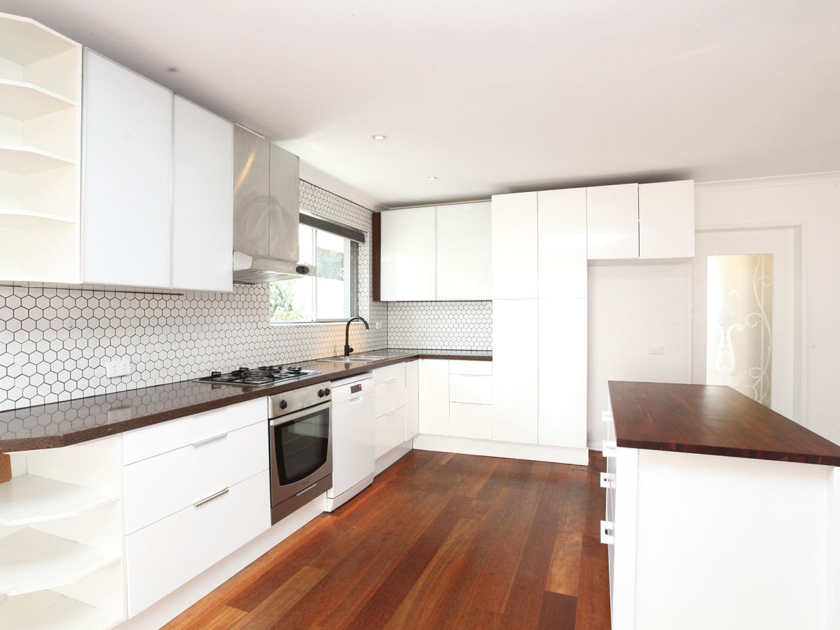 A unique tiered design offers a choice of three outdoor spaces, from a private front courtyard opening out from the open plan living/dining/kitchen area, to the elevated rear patio or lower back garden. Enjoy open plan living and polished floorboards, and the low-maintenance, reticulated outdoor spaces.