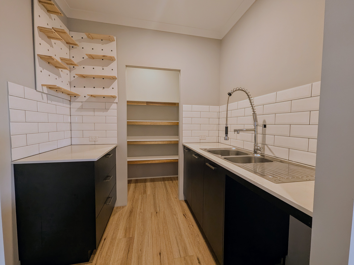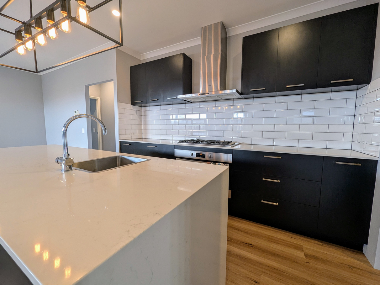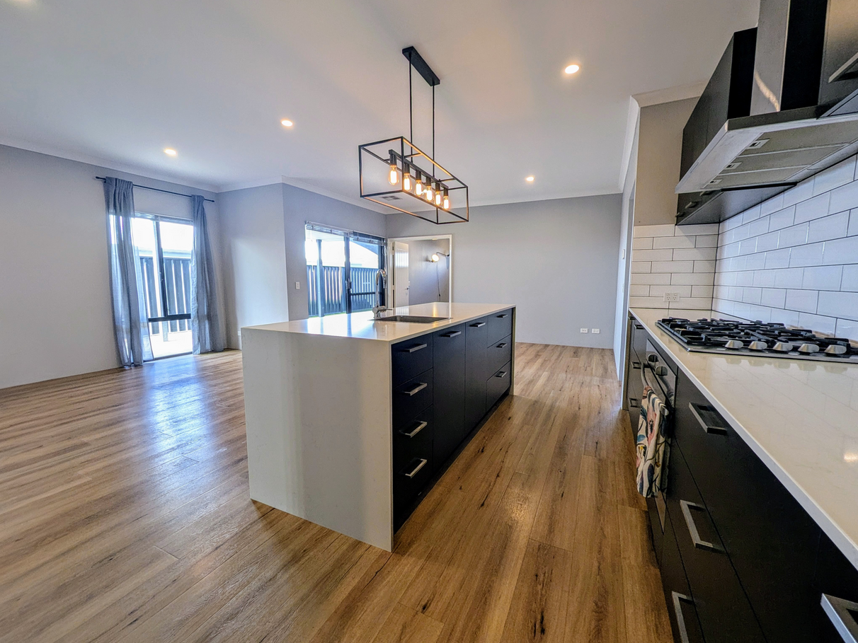 At the heart of the home, the kitchen boasts 900mm appliances, a large pantry, and a scullery with a secondary sink, perfect for any home chef. The stylish waterfall benches to the island add a touch of elegance, while the open-plan design flows seamlessly into the entertainers’ backyard. The alfresco and extended patio area offer a fantastic space for outdoor living and entertaining.