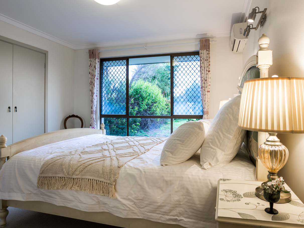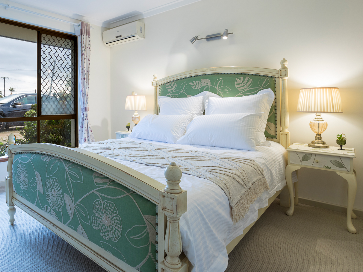 Carpeted bedrooms, with split system air conditioning units in bedroom 1 and 2.