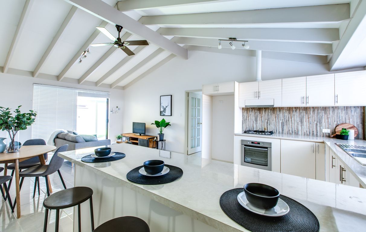 • Spacious open plan kitchen, living and dining area with high ceilings