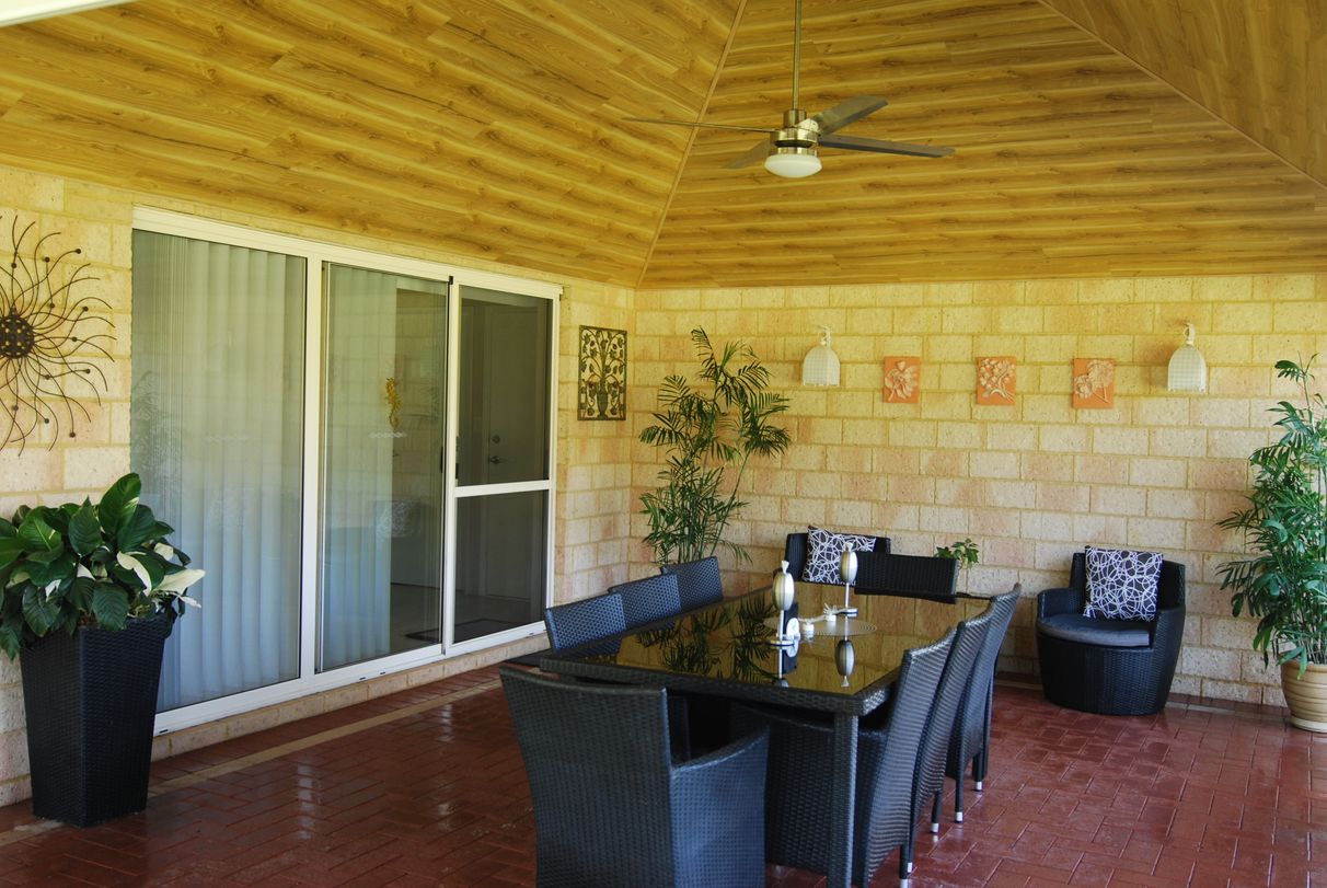 • Alfresco entertainment area with cathedral ceiling, Fan and exceptional quality pull down blinds
