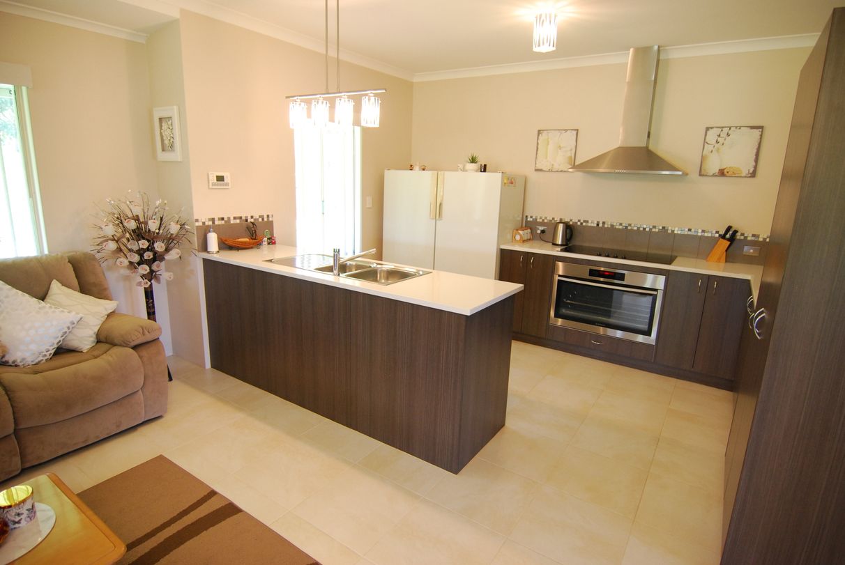 • Modern kitchen with 900mm oven, Stainless range hood and Essastone benches (31 course ceiling)