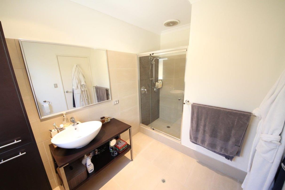 A massive upstairs living area includes space for a home office or study nook and leads out onto a private balcony with further magnificent views of the park & lake. Large walk in robes connect the adjacent Master bedroom with a modern ensuite while a hallway leads to a further two large bedrooms separated by a full second bathroom. The bathroom includes a bath size spa and both bedrooms have built in robes.