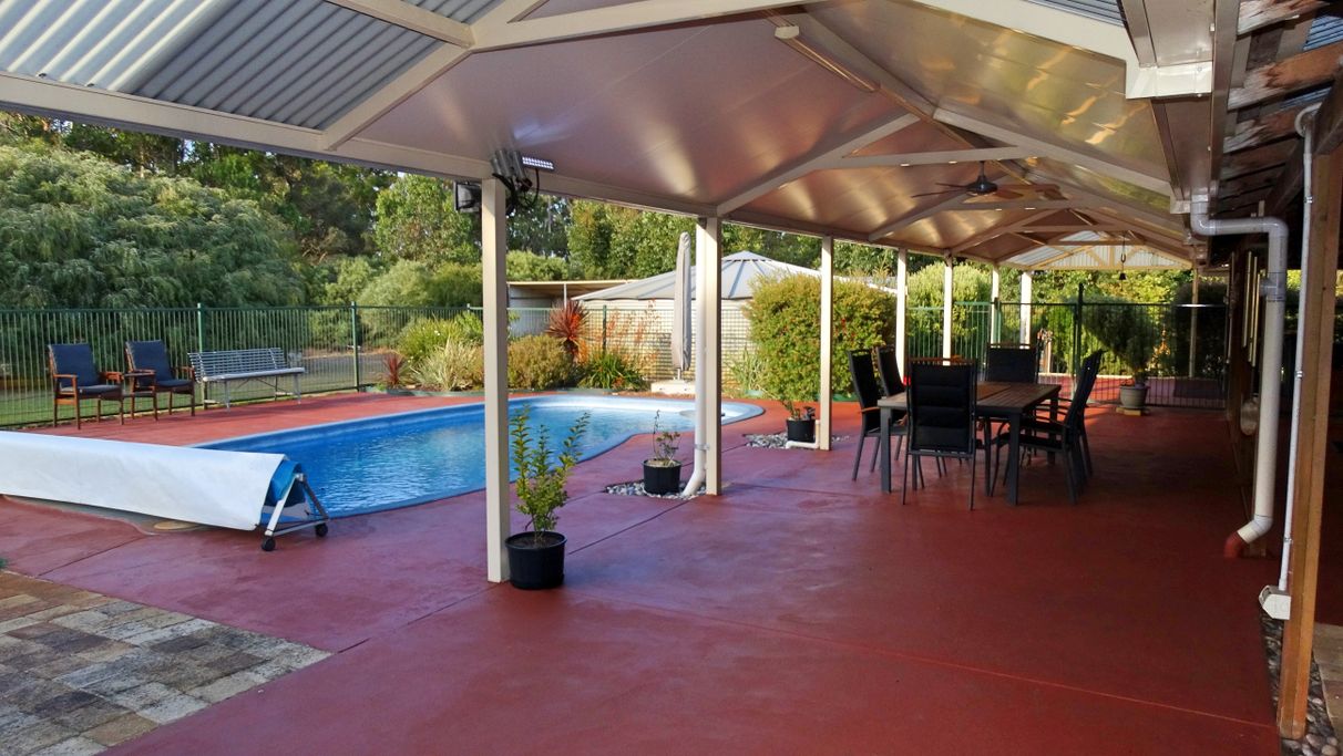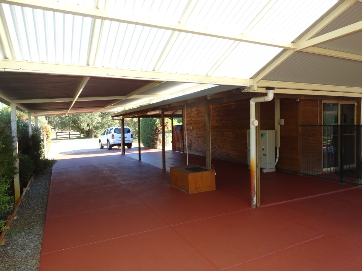 - A large outdoor patio/entertaining (65sqm) and enclosed pool area, with adjoining 3 car undercover and two car hard stand carport area leading to a hard stand property entrance for visitor and Horse Float parking and easy rear access.
