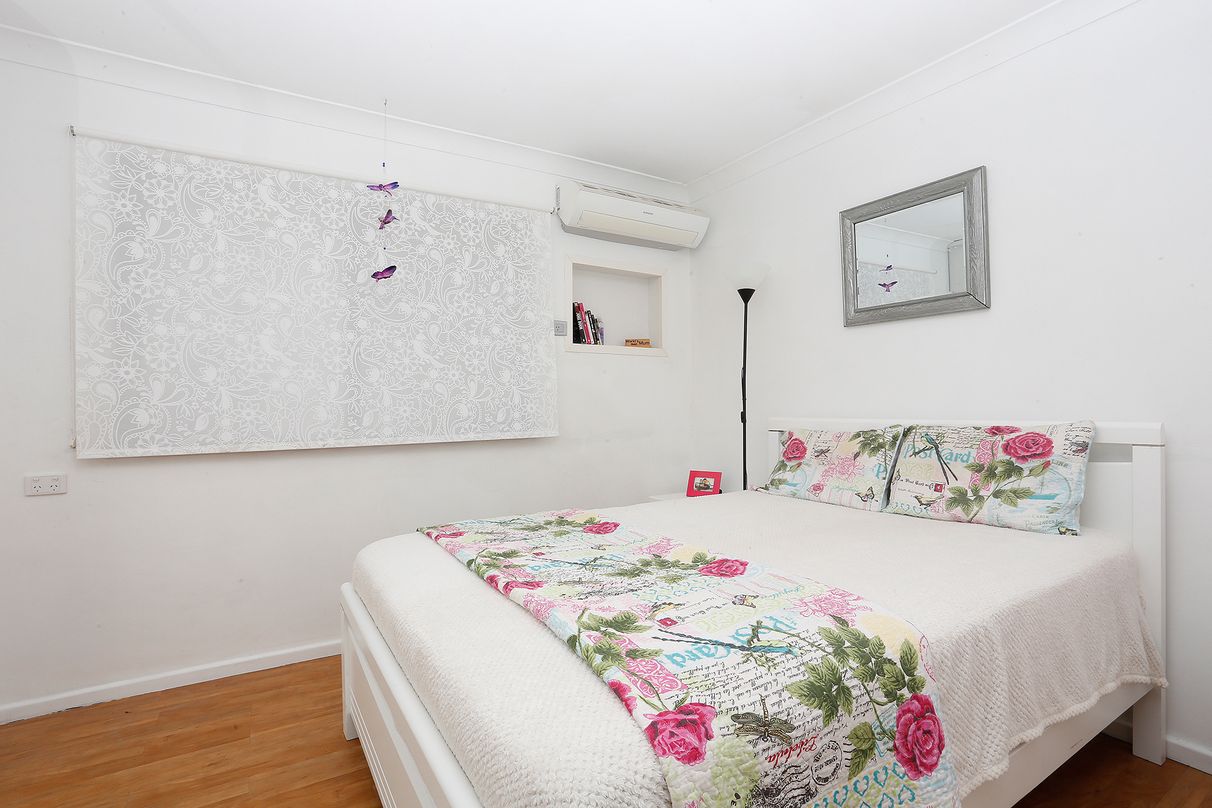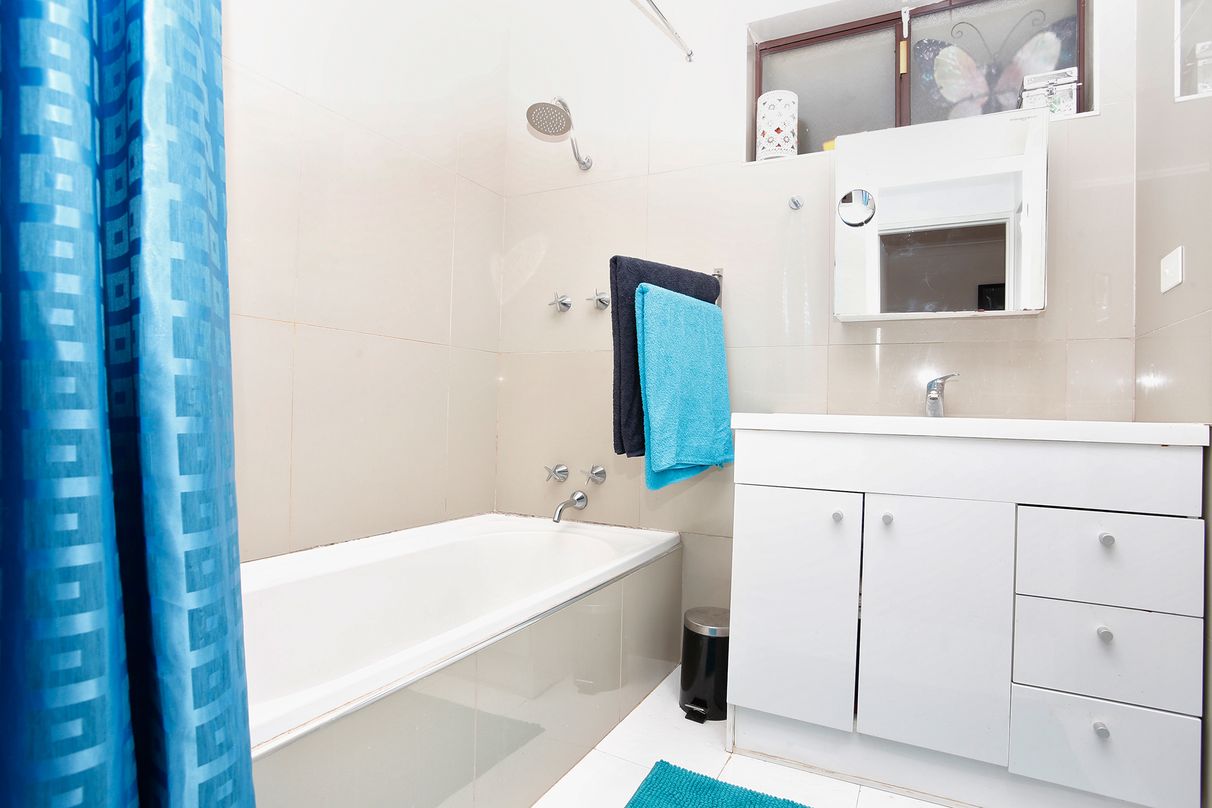 Three bedrooms and a modern bathroom with full-height tiling, bath/shower and separate toilet - the master with air-conditioner and wall-to-wall robes, and the 3rd bed with access to the entertaining!