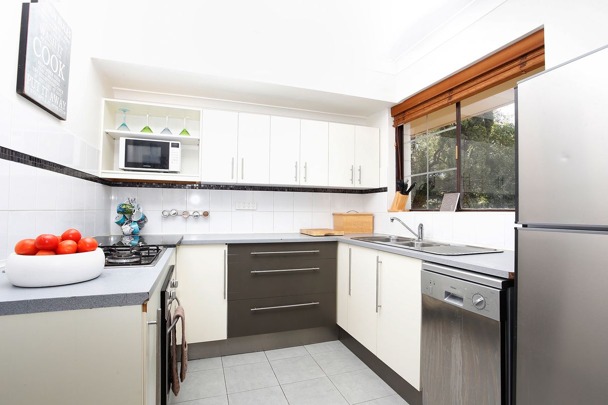 Spacious lounge and dining zones with split system A/C and fan, adjoining a well-appointed modern kitchen with stainless steel electric oven, pull out pantry, gas cooktop, dishwasher and excellent storage.
