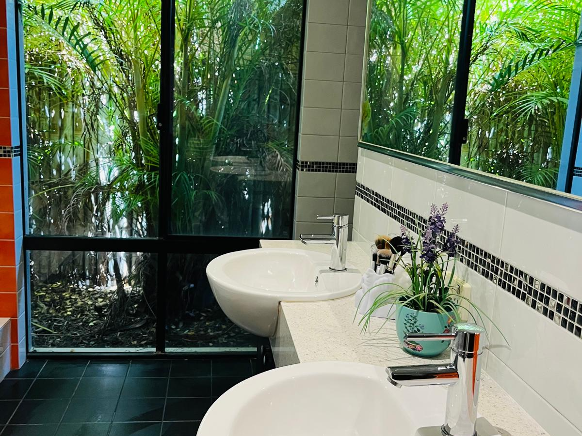 High ceilings, downlights, and easy-care flooring throughout enhance the sense of space and sophistication, with ducted air conditioning ensuring year-round comfort.
