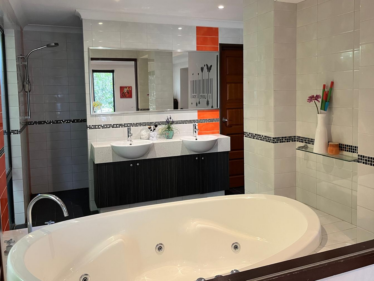 The king-sized master suite serves as a luxurious retreat, complete with a walk-in robe and ensuite featuring quality fittings, while the three additional queen-sized bedrooms come with built-in robes and share a well-appointed family bathroom with separate bath and shower.
