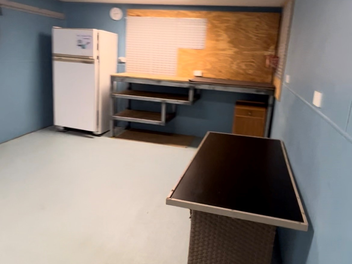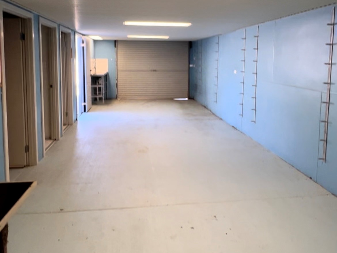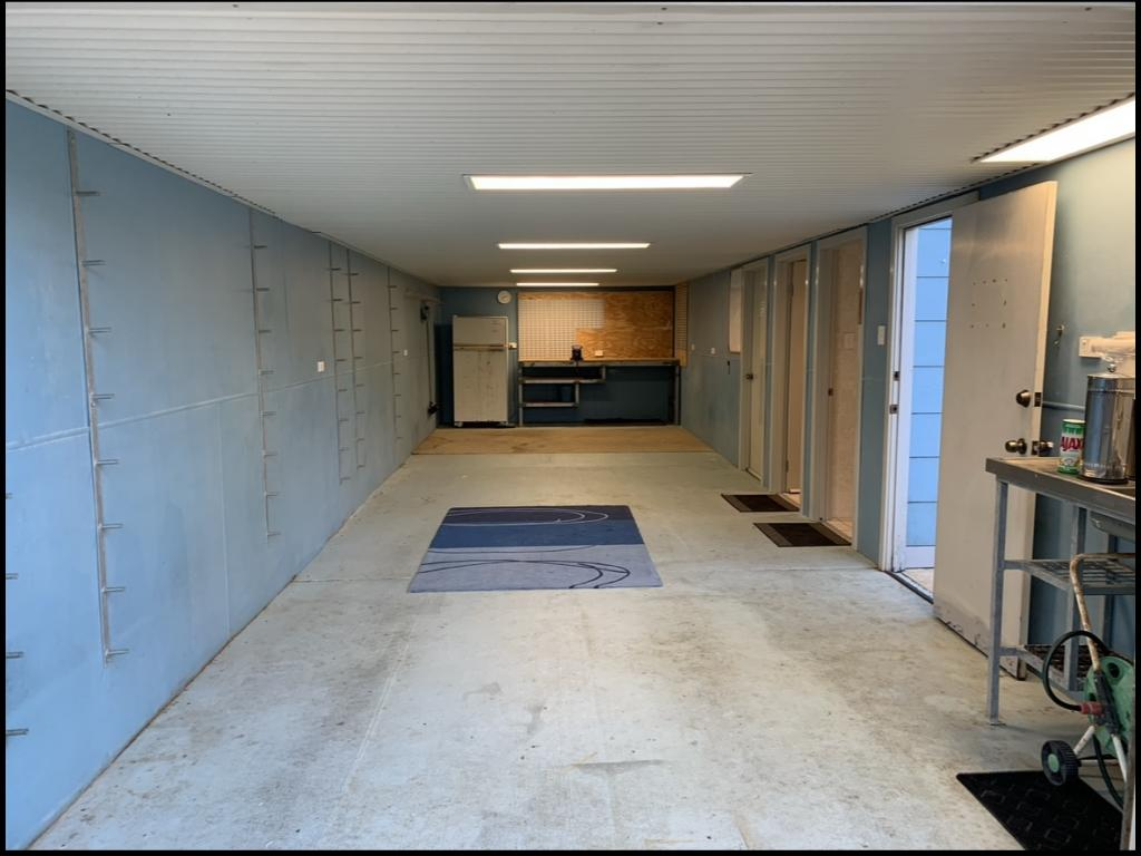 Closed off double length garage including workbench area, plumbed fish cleaning sink, plus additional storeroom, laundry, and toilet …..and a (3rd) fridge, plus fluro lighting make this a great area for a games room or studio.