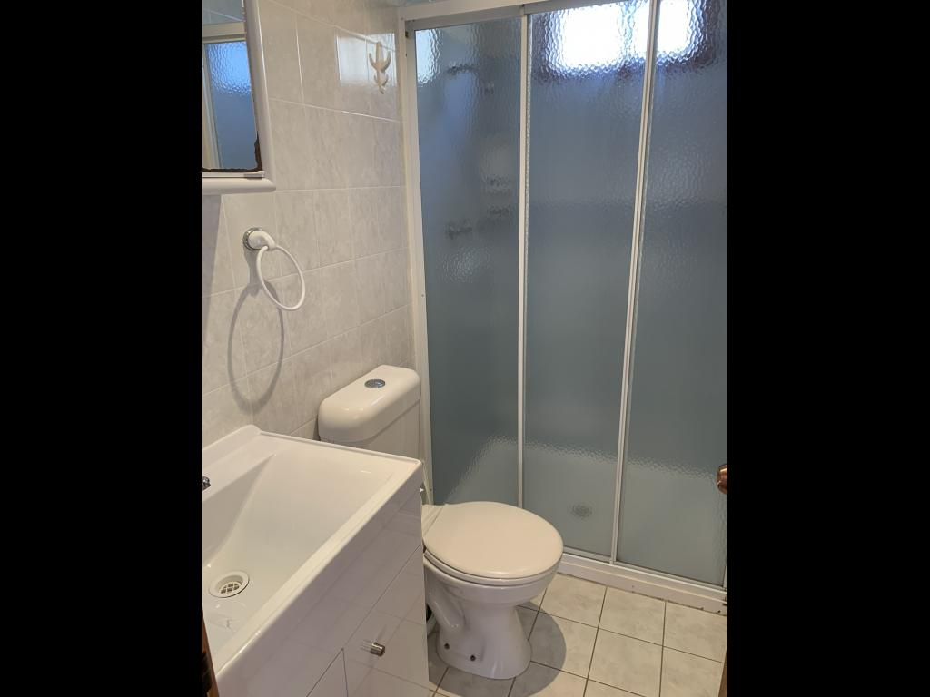 Fully fenced off small back yard with built in dog kennel under the balcony.