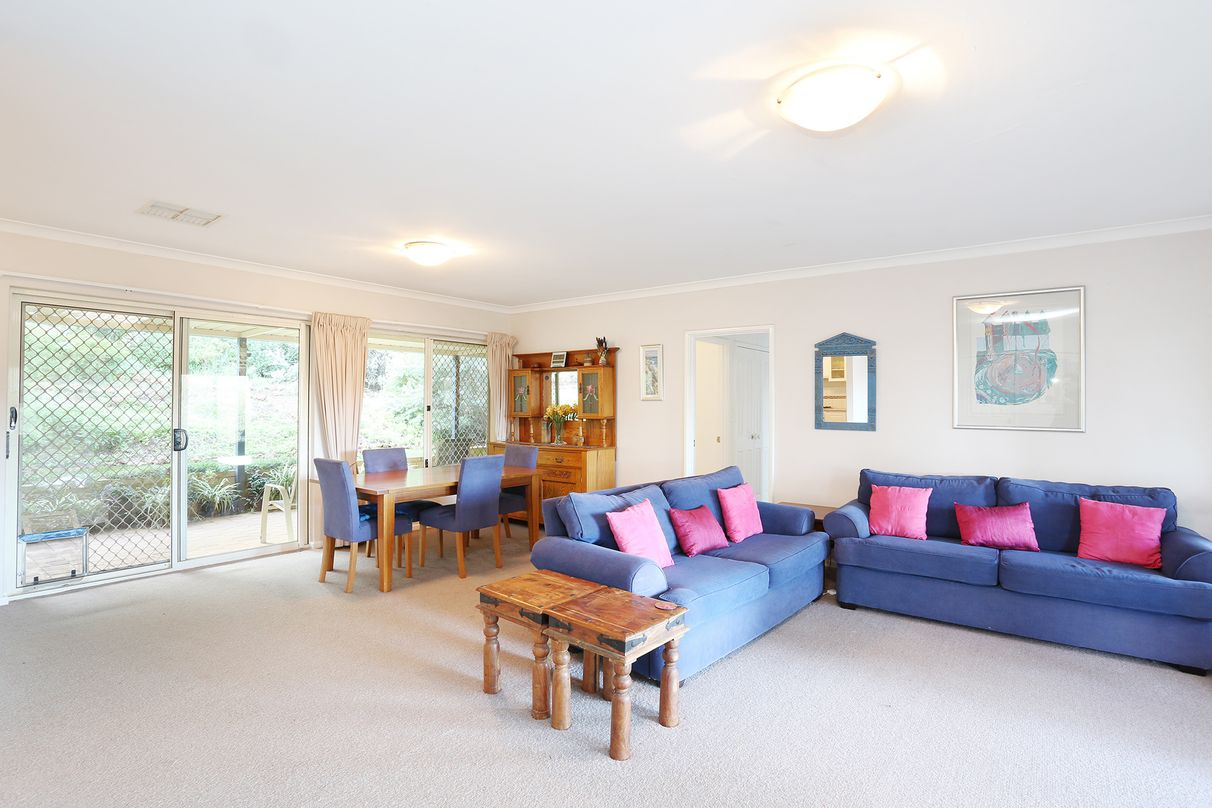Generous proportions, multiple living spaces and a peaceful, secluded setting define this exceptional family home. Located at the end of the road down a private driveway, the sloping block enjoys total privacy. Cleverly constructed to take advantage of the sensational 180-degree sweeping valley views, each room enjoys stunning outlooks and sliding doors accessing the wrap-around verandah.