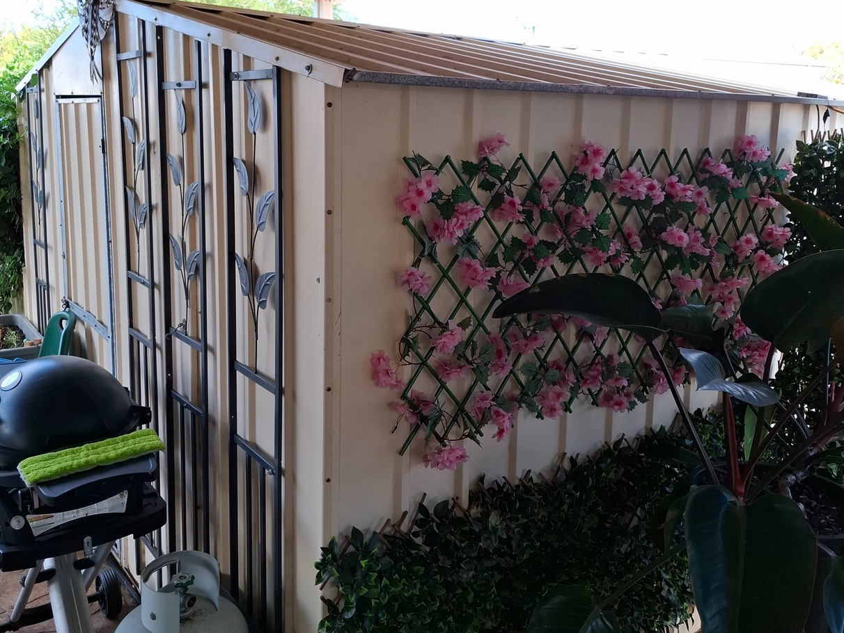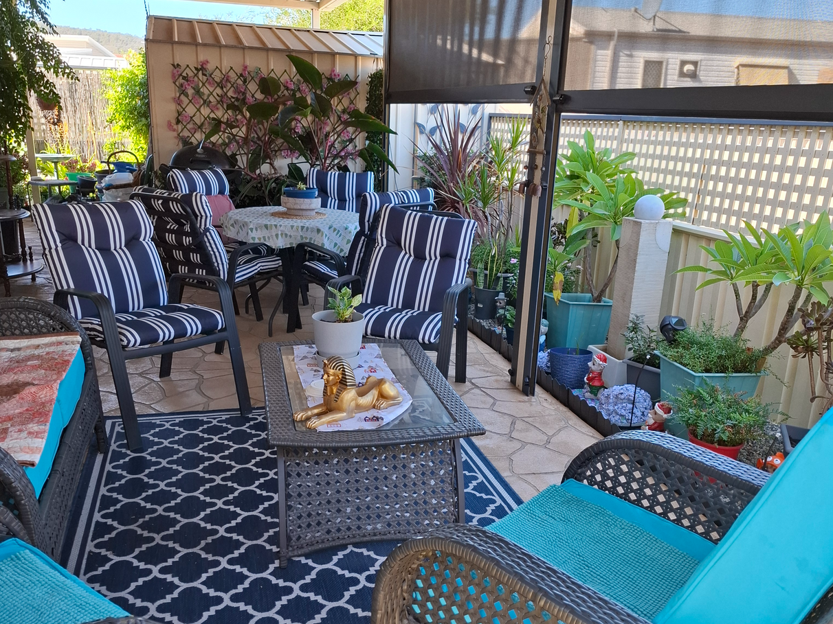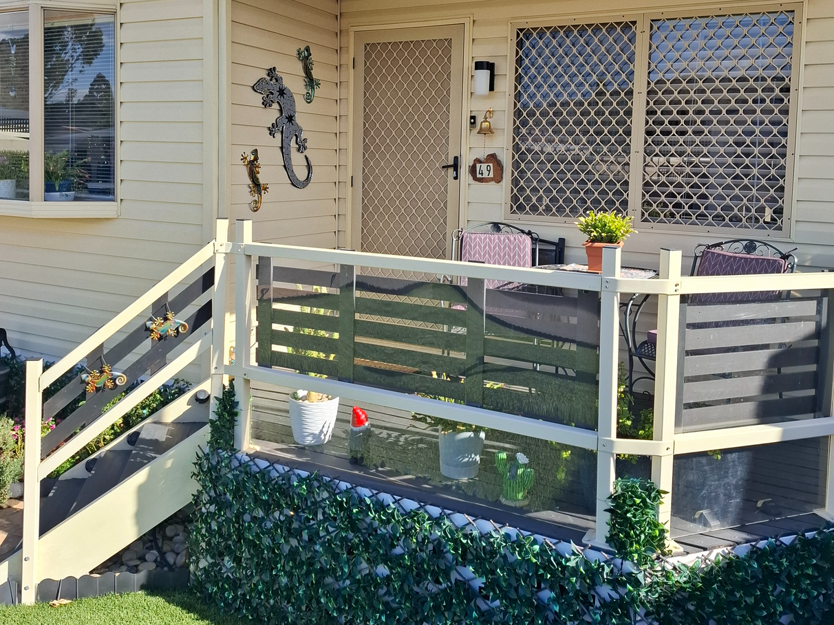 privacy screens, lockable gate, with area for BBQ and outdoor living