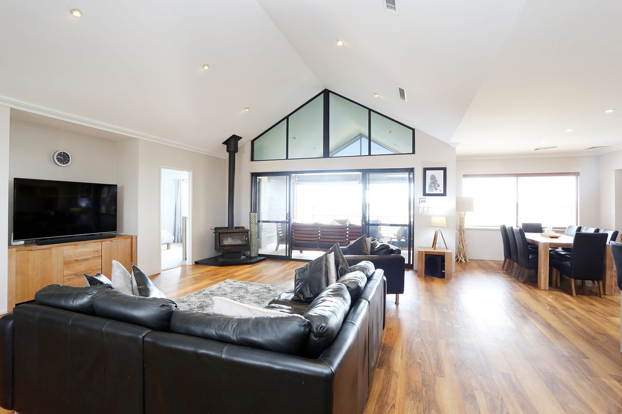 The open space kitchen features quality stainless steel appliances such as a 900mm oven, plenty of cupboard space, with stainless edged bench tops and an island bench with double basins which make this kitchen a dream to cook in. Your kitchen overlooks the very expansive and open dining and lounge areas which allows the chef to also enjoy the family and guests while preparing meals. It also has a Jarrahdale log burner on a granite plinth for those cosy winter nights.